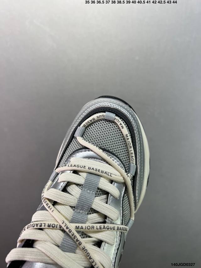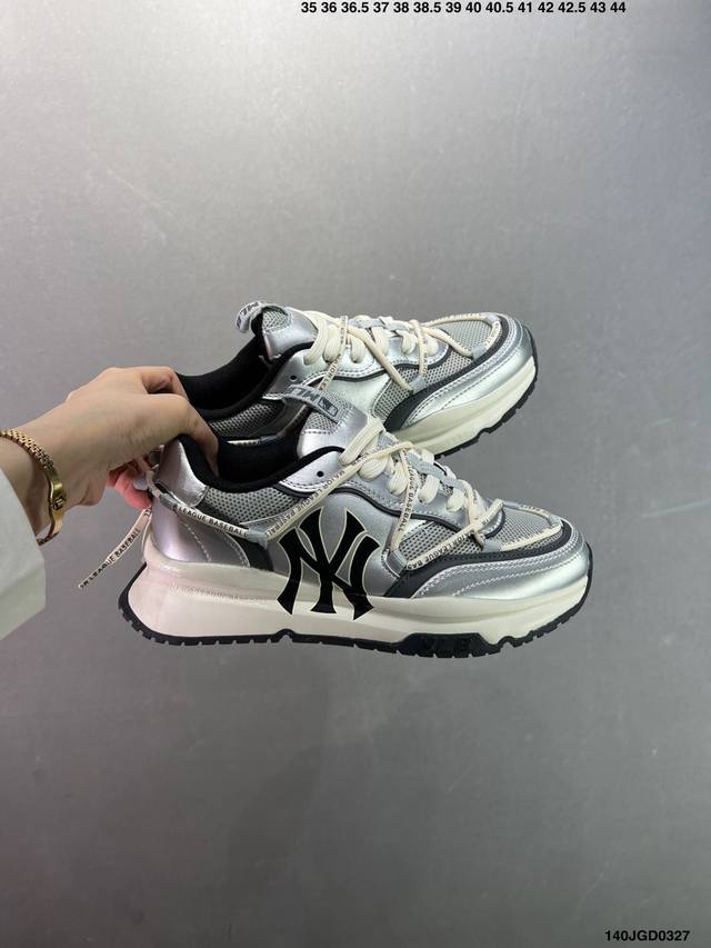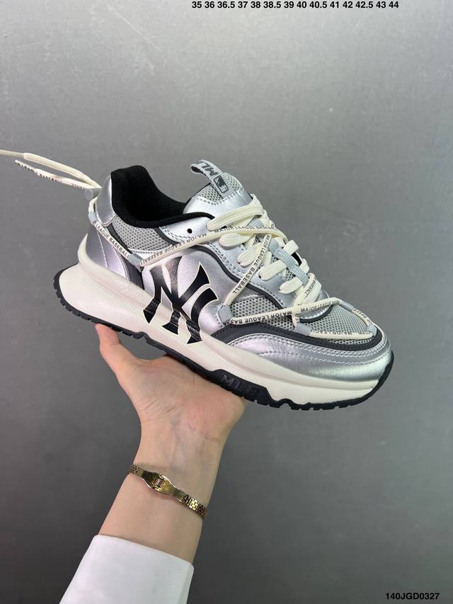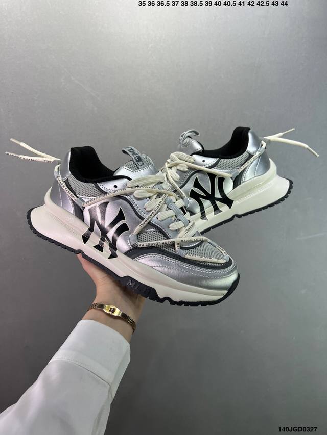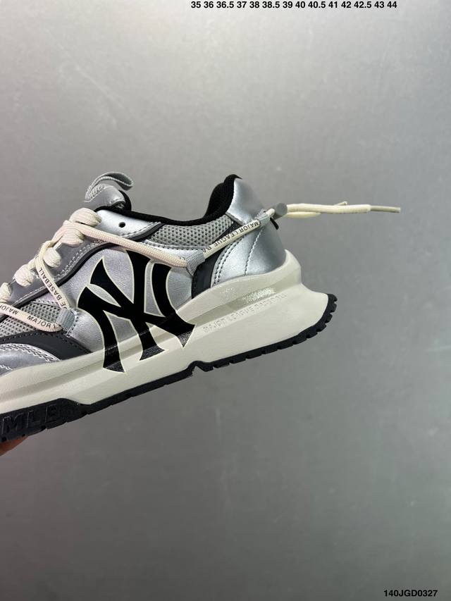 korea韩国限定发售Ny美国榄球洋基队限定 X Mlb Big Ball Chunky Mesh 厚底老爹系列低帮网织轻量休闲运动慢跑鞋“网眼象牙白黑Ny印花”