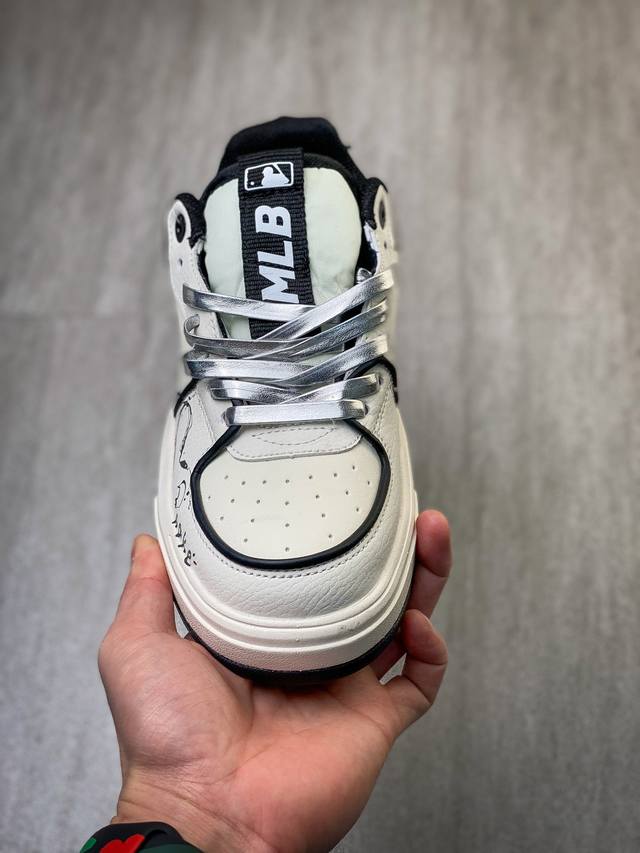 纯原级Ny美国榄球洋基队 X Mlb Chunky Runner Basic 白绿涂鸦 厚底老爹厚底休闲运动慢跑鞋采用优质轻量克重纤维移膜皮革及透气网面鞋面材质全新独立开发4.5Cm厚度组合磨具大底