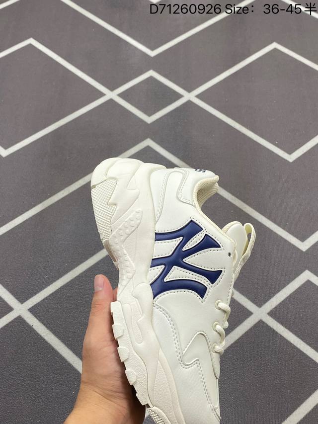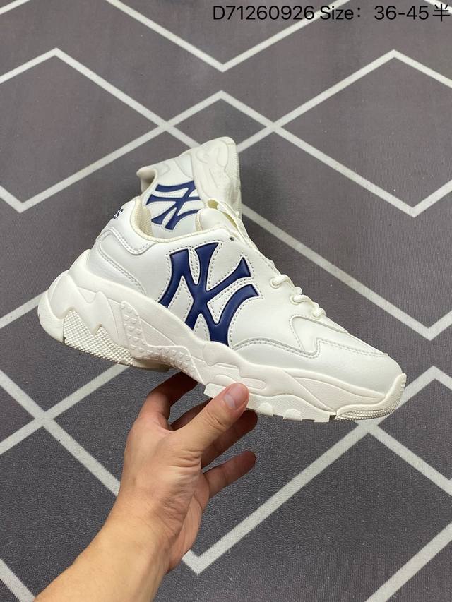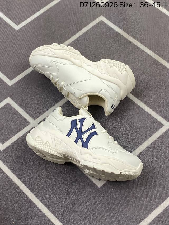 公司级!Mlb Chunky Liner 厚底休闲跑步鞋 Ny印花 牛皮材质运动鞋 0630334D25