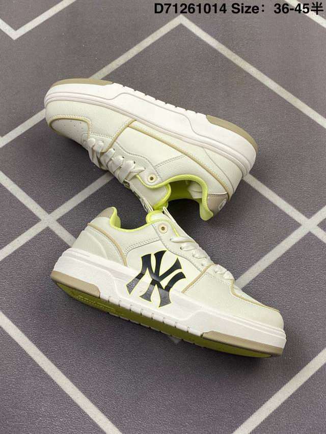 Mlb 韩国F&F旗下运动品牌 公司级 学长老爹鞋系列男女鞋真标半码制 升级原楦原纸版数据开发版型,采用同源一致 正确色卡校准联乘美国榄球洋基队New York Yankees X Mlb Chunky Liner Low 学长鞋系列低帮老爹风轻量增高厚底百搭休闲运动慢跑鞋“皮革白浅黄黑Ny印花 3Asxca12N