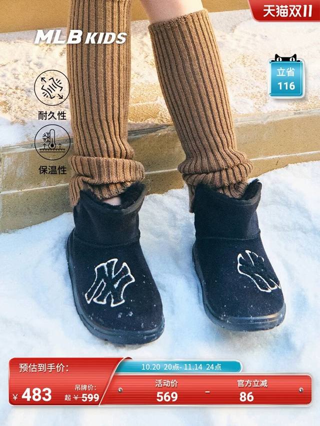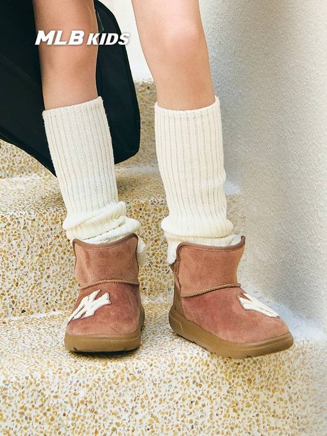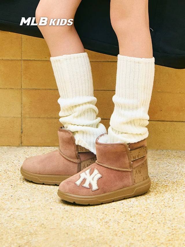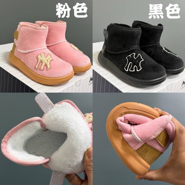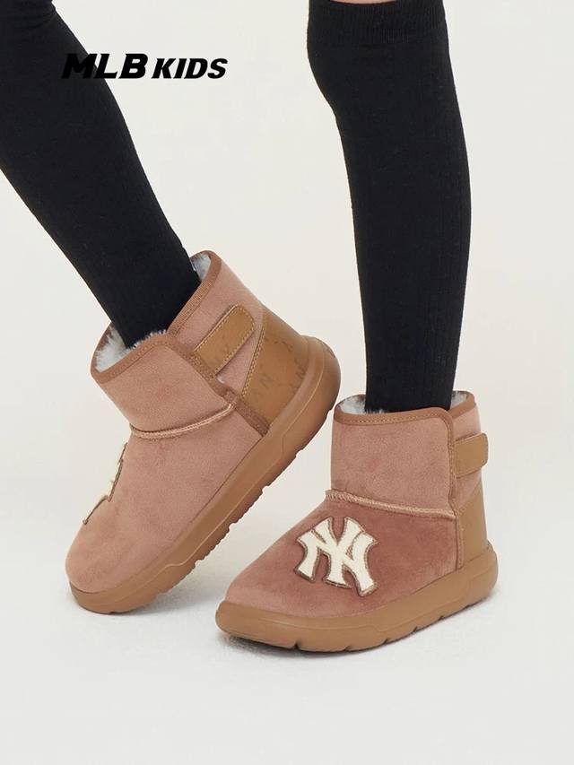 / Mlb新款毛绒中筒儿童雪地靴28-37码 毛绒绒的外观,内里也加绒加厚魔术贴设计,穿脱超方便原装橡胶耐磨防滑大底,脚感超赞