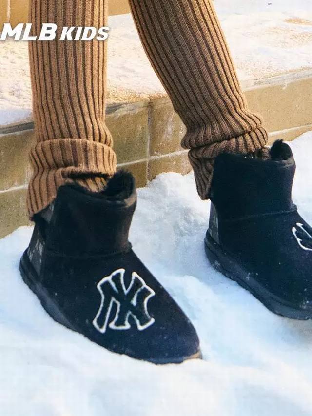 Mlb新款毛绒中筒儿童雪地靴28-37码 Ddd 毛绒绒的外观,内里也加绒加厚魔术贴设计,穿脱超方便原装橡胶耐磨防滑大底,脚感超赞 DDD