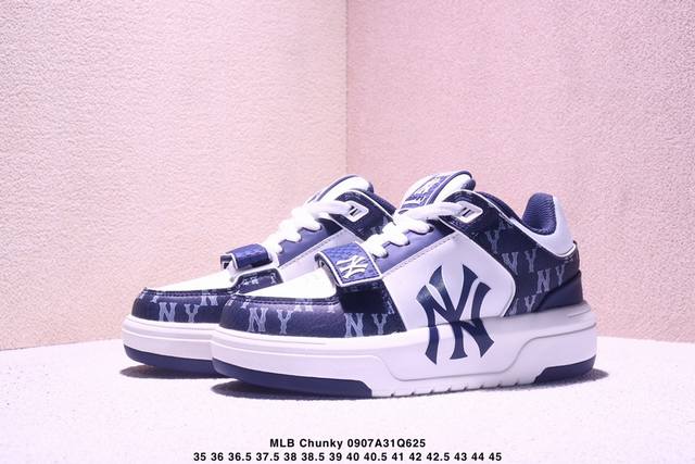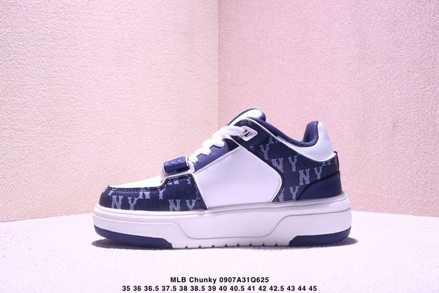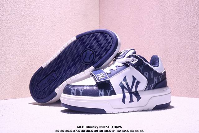 公司级Mlb Chunky Liner Mid人气单品学长鞋系列轻量增高厚底百搭中帮休闲运动板鞋