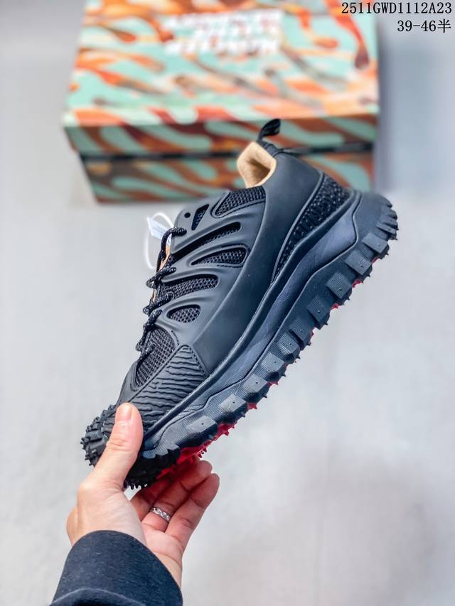 新品实拍篇 原装D版#男女鞋配置天地盖礼盒及防伪配件#原楦数据开发版型#采用网眼布组合Tpu饰片鞋面材质#嵌入防形变碳素中板#配置缓震Ortholite 欧索莱 透气吸汗鞋垫#Eva轻量化缓震材料中底#Vibram Megagrip复合橡胶材料防滑黄金大底 指纹大帝 新联名悄悄上架!盟可睐 蒙口 联名新晋国际知名鞋类设计师Salehe Bembury X Moncler Trailgrip Gore-Tex 越野旅行系列低帮厚底轻量户外登山运动鞋“奶白”K109A4M00130M6068001 DDD 尺