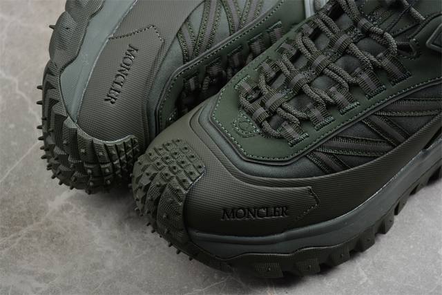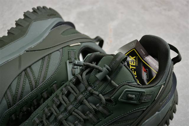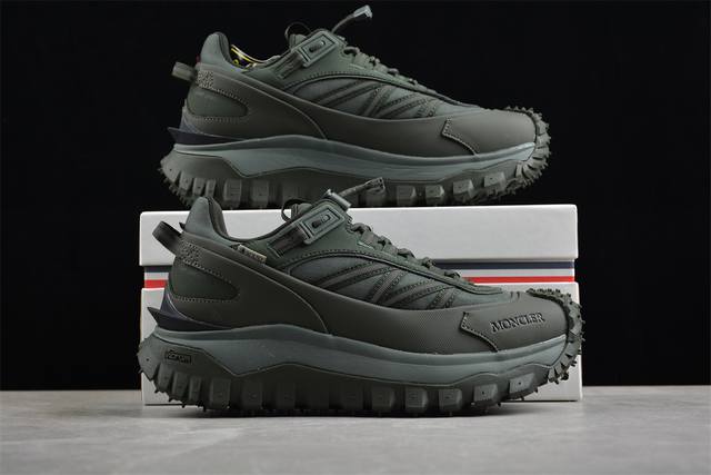 鞋身采用Cordura防撕裂尼龙/Gore-Tex防水材质 中底内置全掌碳板 支撑性能拉满 侧边3M反光带 鞋底搭Vibram外底提供超强的抓地力和防滑性能 原装大盒包装 内赠Moncler徽章防层袋一副