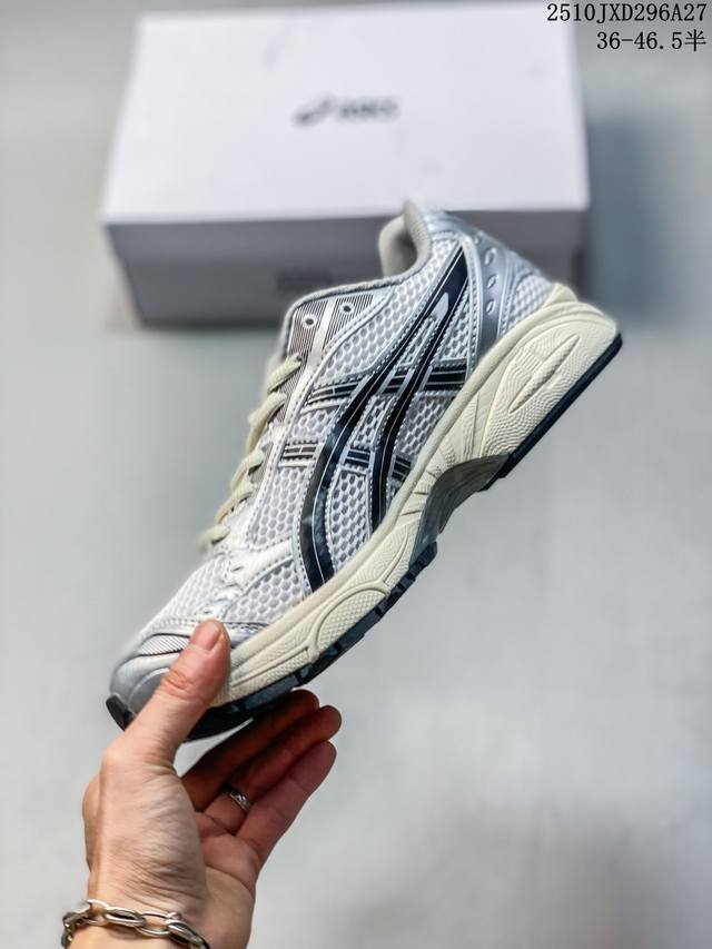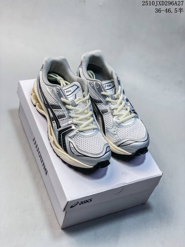 公司级带半码! 采用环保太空合成革配合透气网眼布鞋面材质#中底3D可视Gel缓震胶效果#升级Eva全新缓震中底部位科技组合耐磨橡胶外底片13年前经典首度回归,复刻魅力难挡!日本专业跑鞋品牌 亚瑟士 Asics Gel Kayano 14 系列轻量缓震休闲运动跑步鞋 Asics Gel-Kayano 14 于2008 年在万众期待中横空出世,设计师 Hidenori Yamashita 以 Flash 一词为灵感,创造出未来感金属色鞋面,改造升级内在性能,由内而外全面革新,为 Gel-Kayano 家族传承