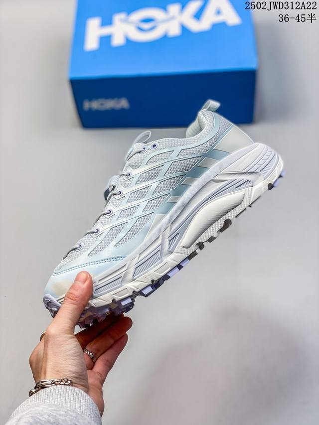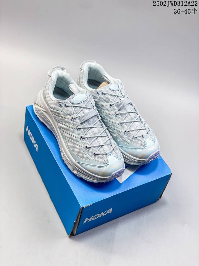 Hoka Mafate Speed Three 2玛法特 超轻厚底轻量山地跑步鞋 作为先锋品牌的 Hoka One One总是以独特的方式,在设计与功能之间取得平衡Opening Ceremony则是将大胆的个性化设计作为优先考虑的因素双方理念的结合,成就了这一激动人心的全新联名系列。滚动平衡科技和适度的脚后跟倾斜角度,可平稳步伐体验和柔软的脚感,鞋面采用了皮革相拼,带来良好的舒适性和强支撑力。采用全掌Eva中底,厚实而轻便,同时兼顾 Hoka One Onei的标志性缓震性能。