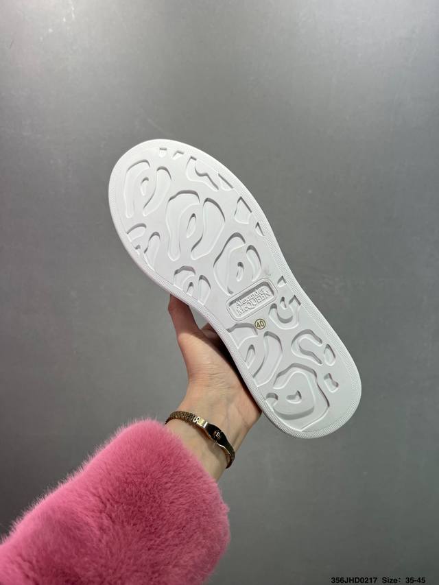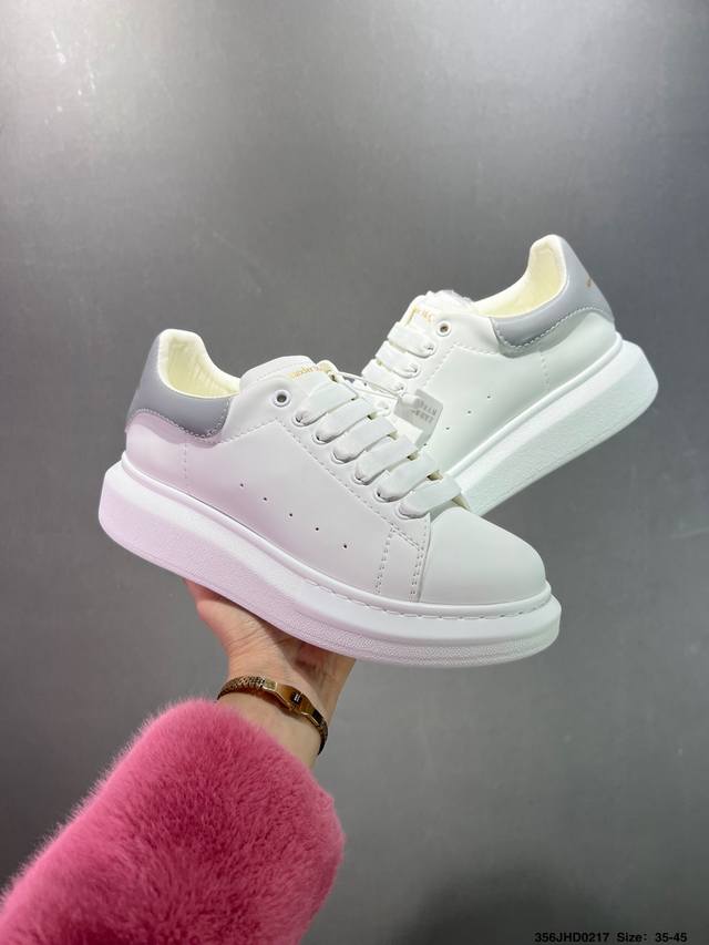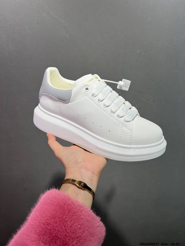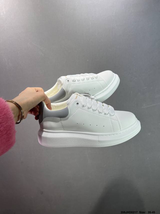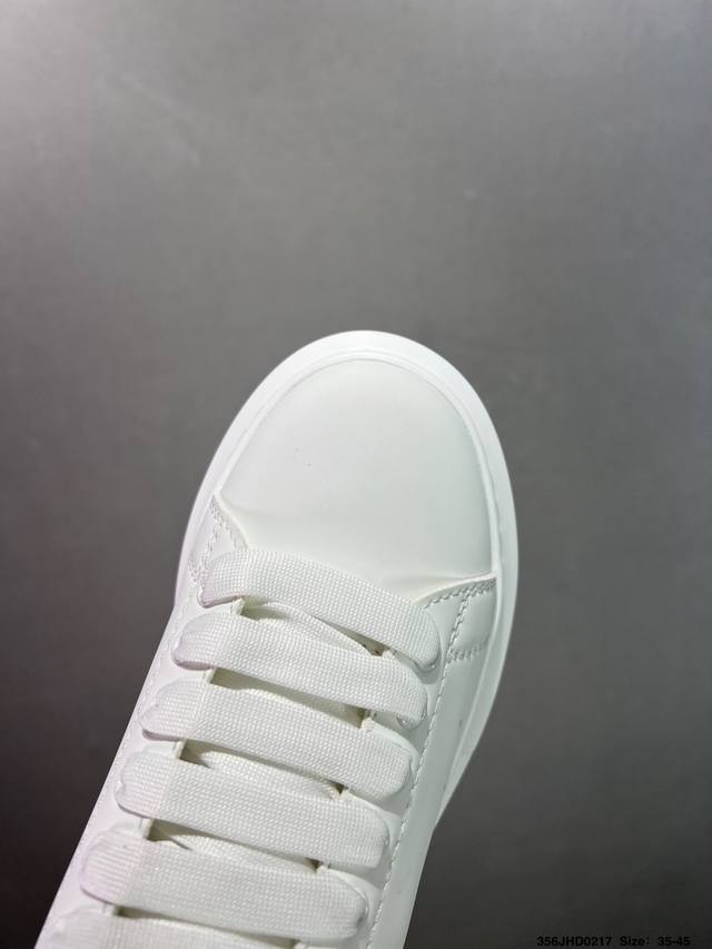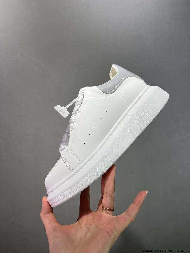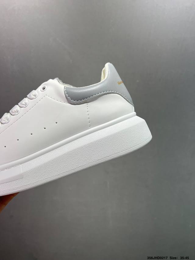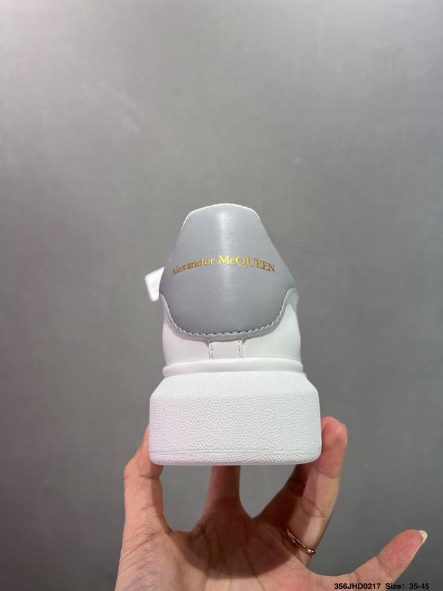 公司级意大利高奢品牌-亚历山大 麦昆Alexander Mcqueen Oversized Sneakers 低帮时装厚底休闲运动小白板鞋“皮革白钢笔蓝麂皮尾”深蓝麂皮尾色 采用丝绸硬质头层小牛皮鞋面材质 内外超软小羊皮贴脚透气及超软Pu脚感乳胶物料鞋 外置原抽真空高密度增高底 男女鞋广东原产品质 升级原楦原纸版数据开发 专柜包装物及配件 附送快递加固牛皮纸盒