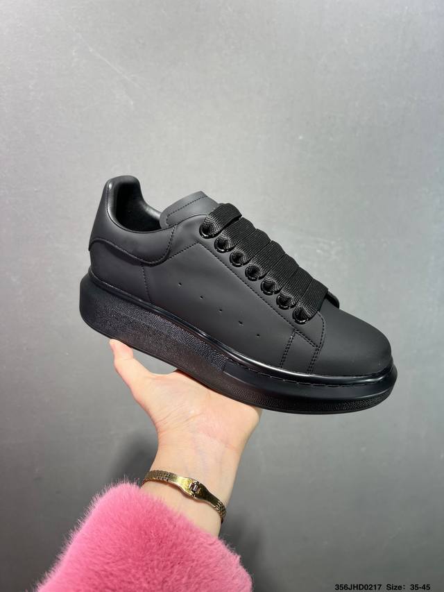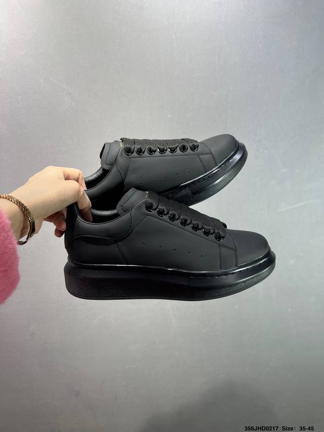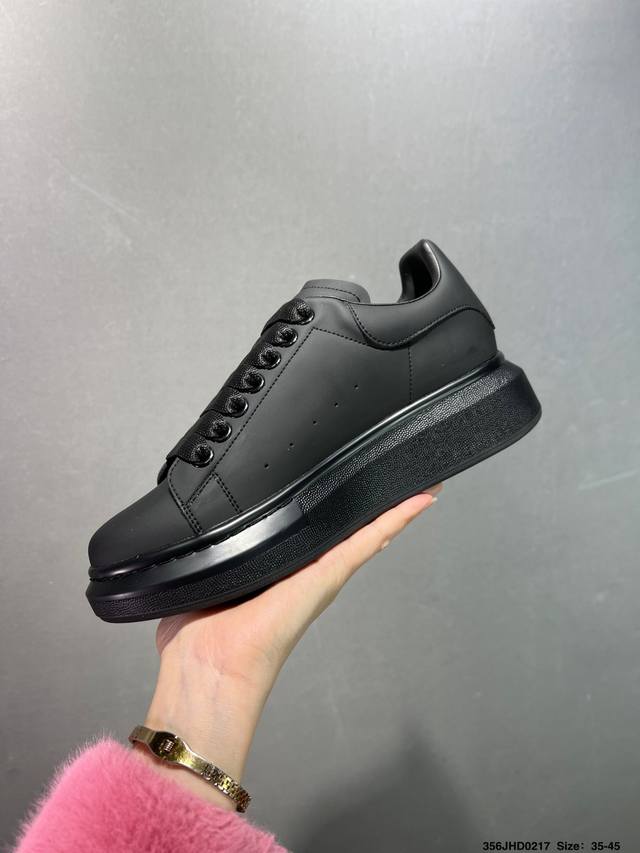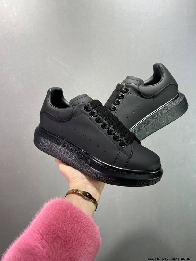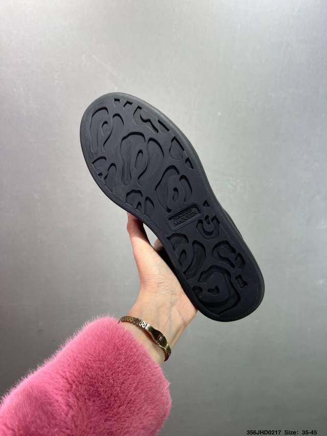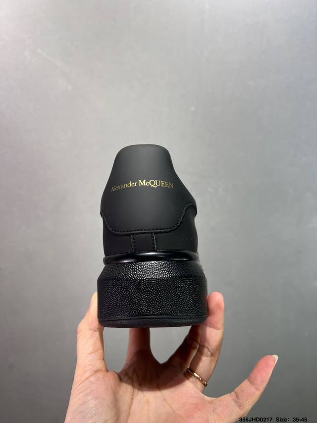公司级意大利高奢品牌-亚历山大 麦昆Alexander Mcqueen Oversized Sneakers 低帮时装厚底休闲运动小白板鞋“皮革白钢笔蓝麂皮尾”深蓝麂皮尾色 采用丝绸硬质头层小牛皮鞋面材质 内外超软小羊皮贴脚透气及超软Pu脚感乳胶物料鞋 外置原抽真空高密度增高底 男女鞋广东原产品质 升级原楦原纸版数据开发 专柜包装物及配件 附送快递加固牛皮纸盒