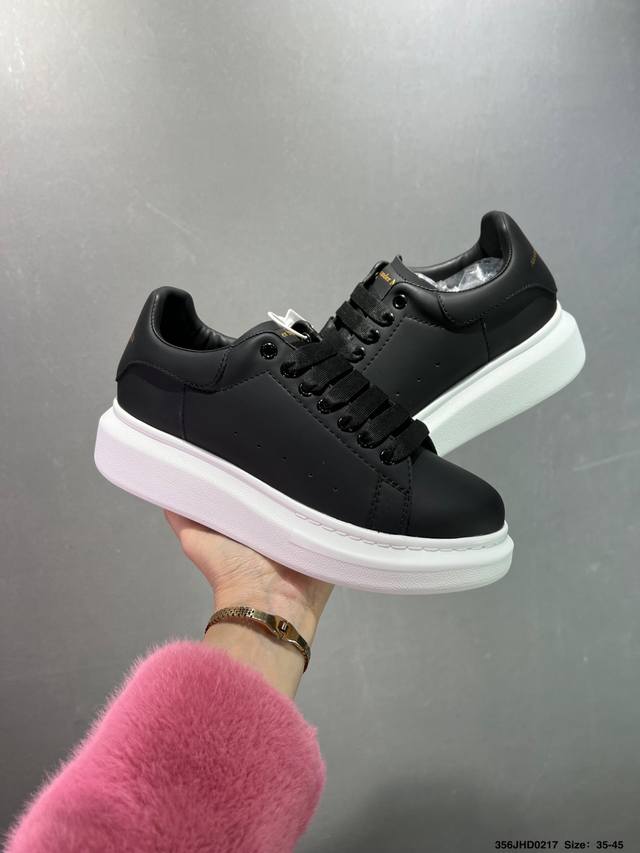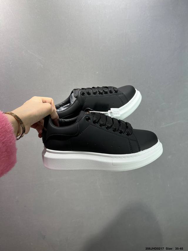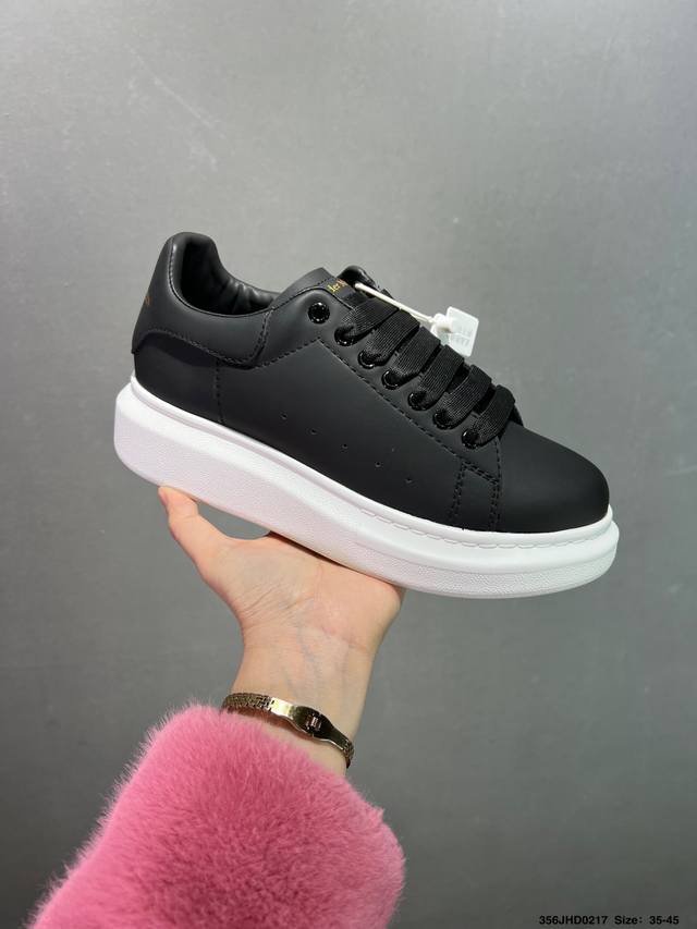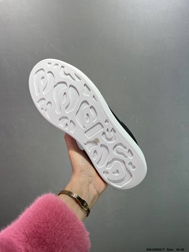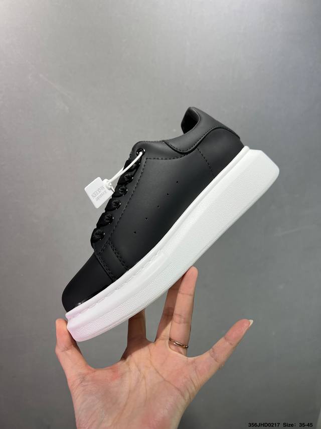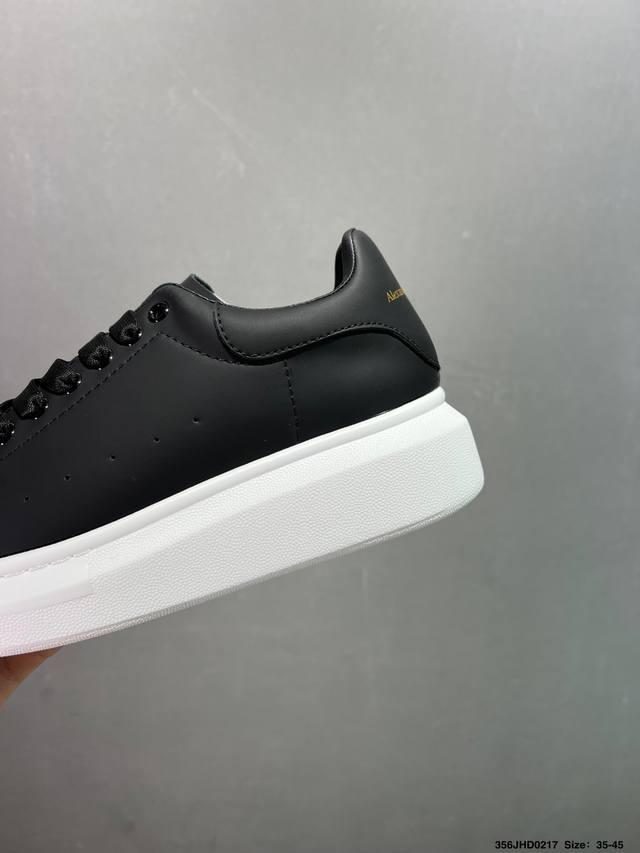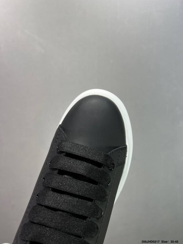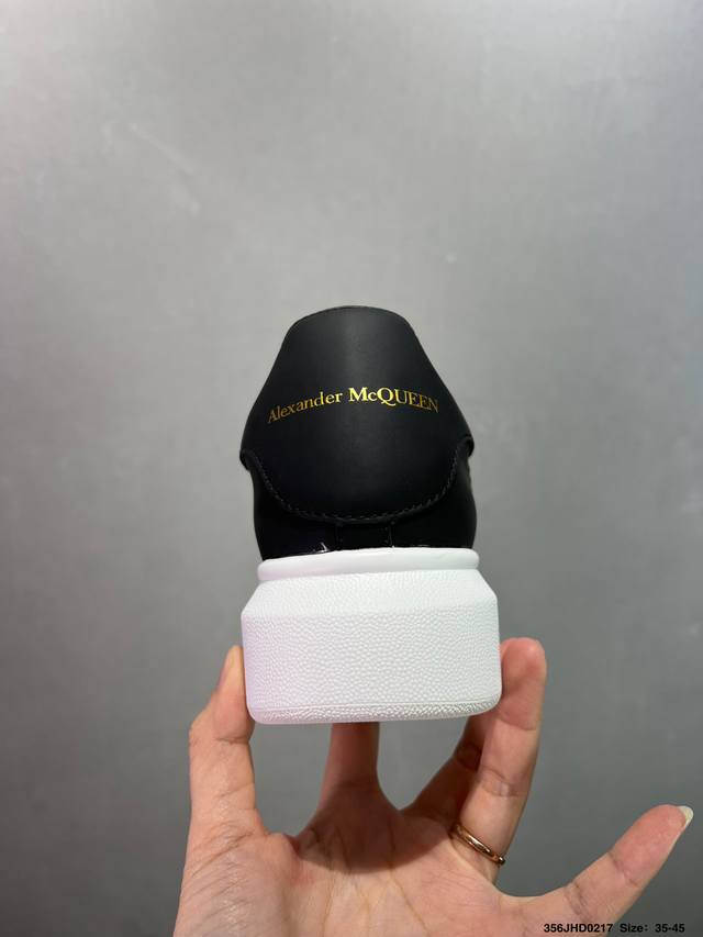 公司级意大利高奢品牌-亚历山大 麦昆Alexander Mcqueen Oversized Sneakers 低帮时装厚底休闲运动小白板鞋“皮革白钢笔蓝麂皮尾”深蓝麂皮尾色 采用丝绸硬质头层小牛皮鞋面材质 内外超软小羊皮贴脚透气及超软Pu脚感乳胶物料鞋 外置原抽真空高密度增高底 男女鞋广东原产品质 升级原楦原纸版数据开发 专柜包装物及配件 附送快递加固牛皮纸盒