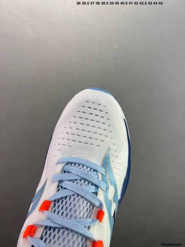 #中底采用加厚的 Pwrrun Pb缓震泡棉,有效减少触地带来的冲击力,能量回馈高达90%,缓震和回弹表现出色。