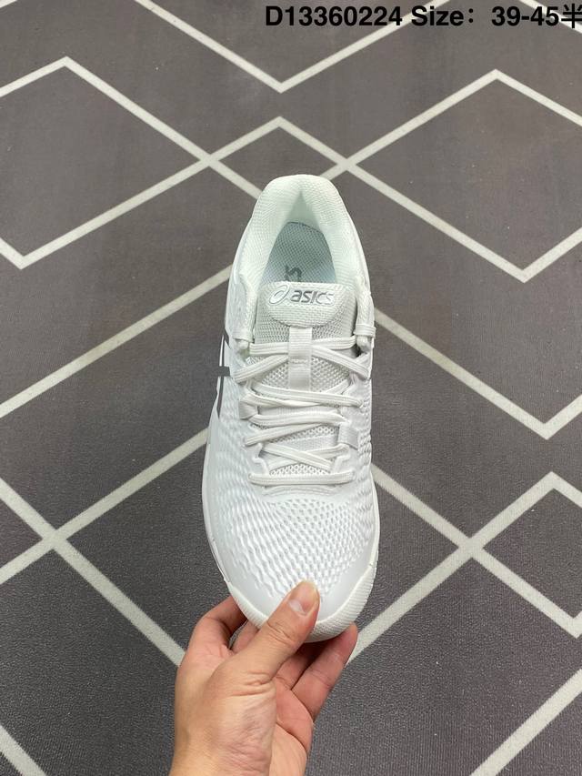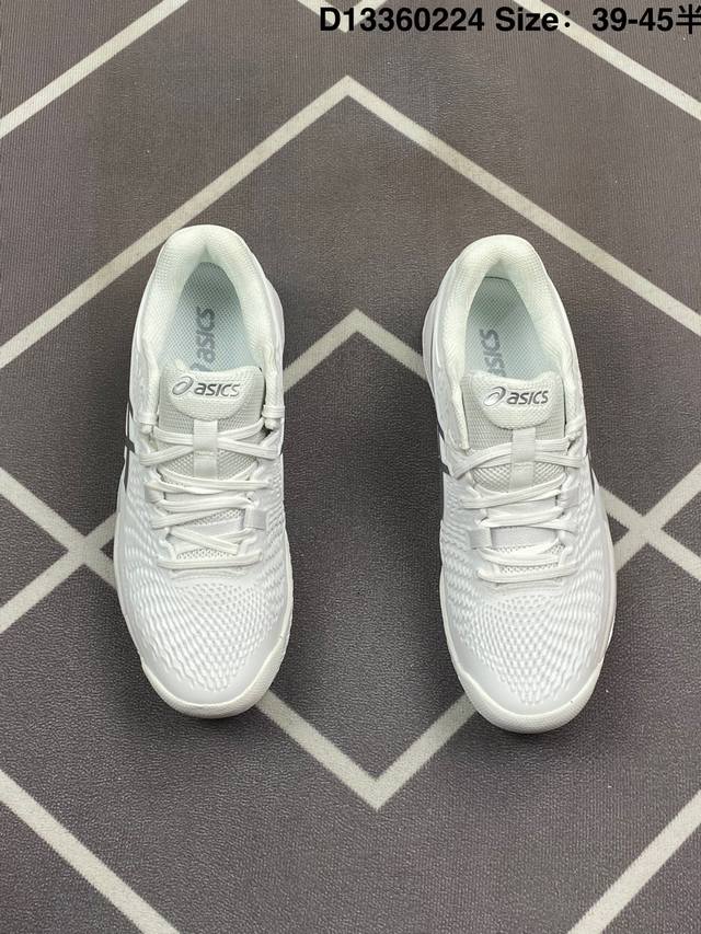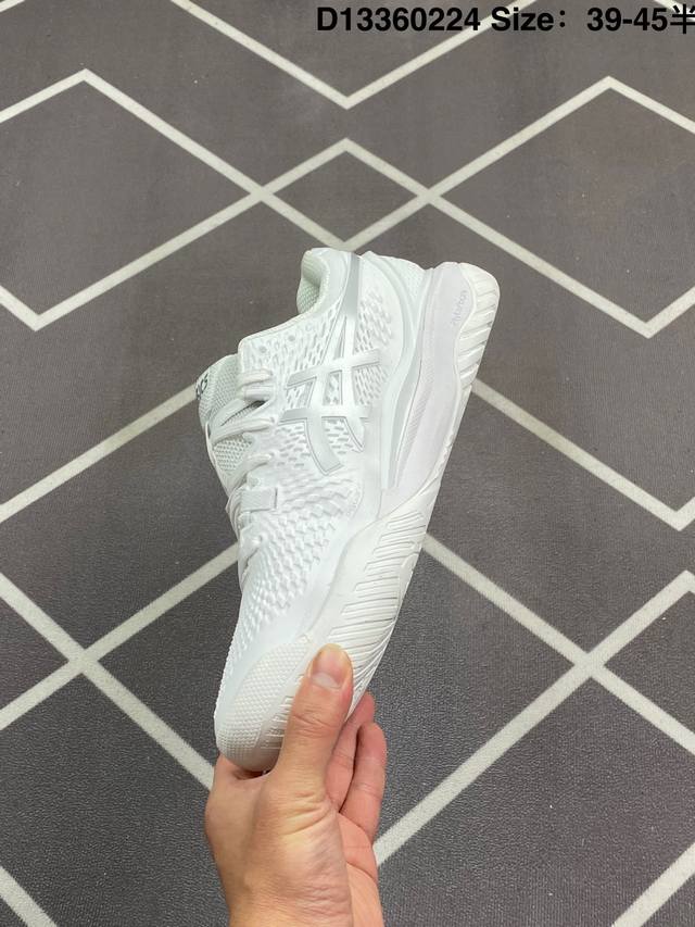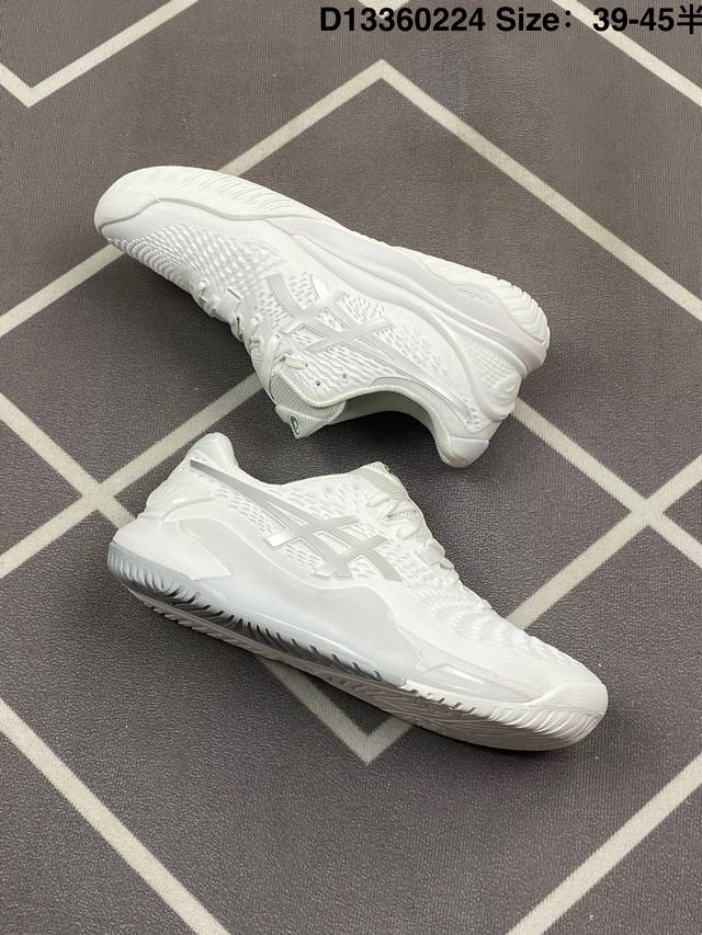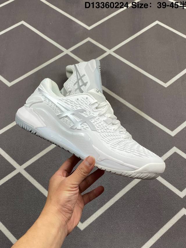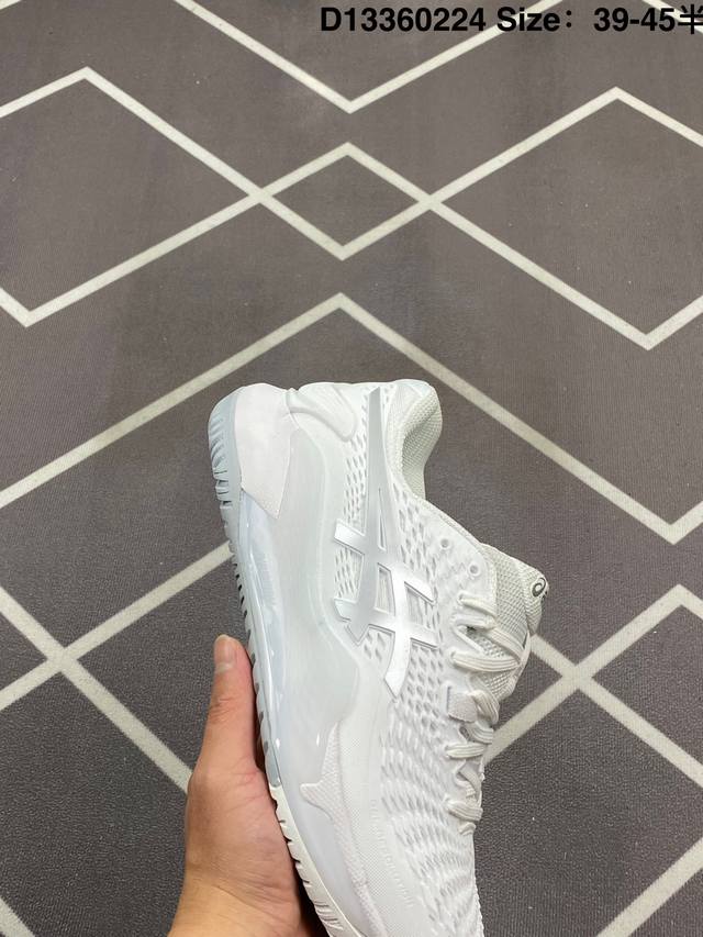 公司级新款Gel-Resolution 9专业比赛R9运动鞋男女减震包裹性运动网球鞋 Flytefoam轻量中底:比传统泡棉更轻盈30%,却提供持久回弹力,长距离奔跑也能告别疲惫感,仿佛脚下装弹簧!Aharplus耐磨外底:高耐磨橡胶+深沟槽纹路设计,抓地力Max,急停转向稳如磐石,陪你征服多种地形。透气工程网眼鞋面:动态包裹贴合脚型,透气孔洞循环散热,高强度训练也能保持双足干爽,告别闷热束缚。