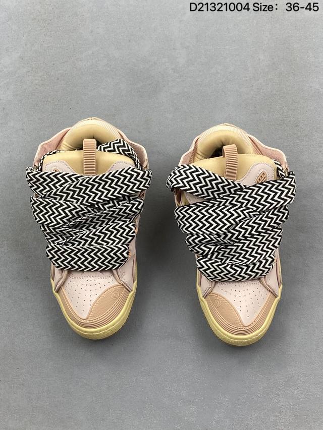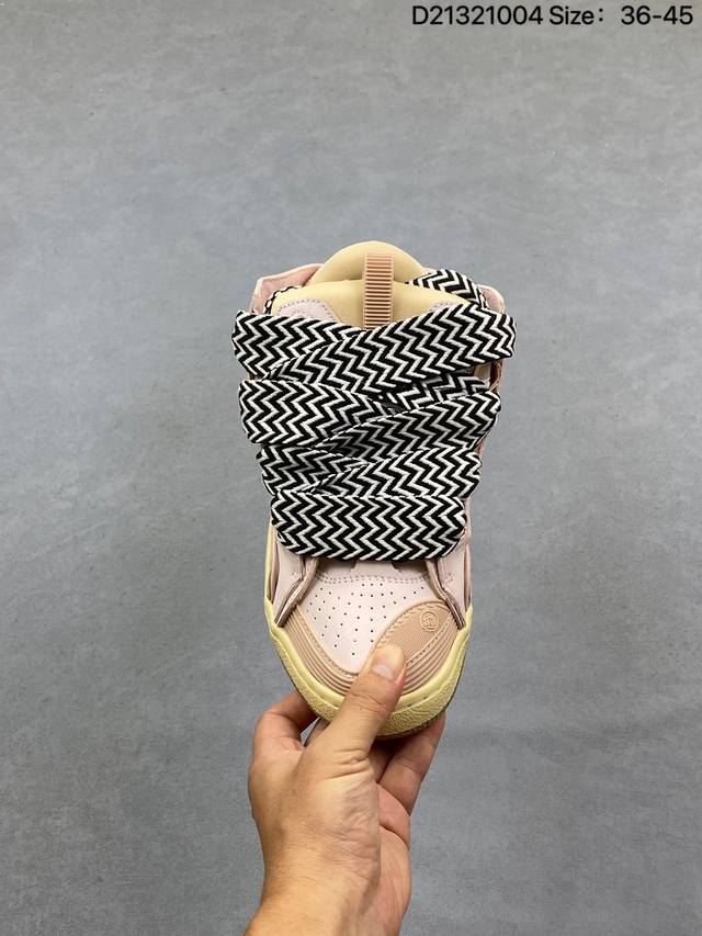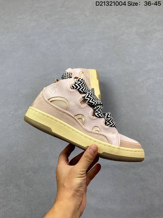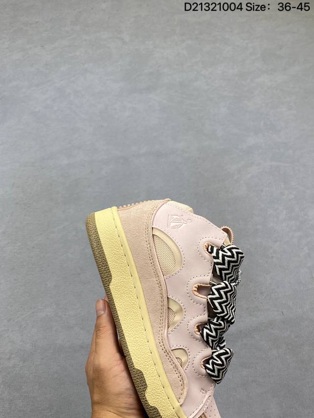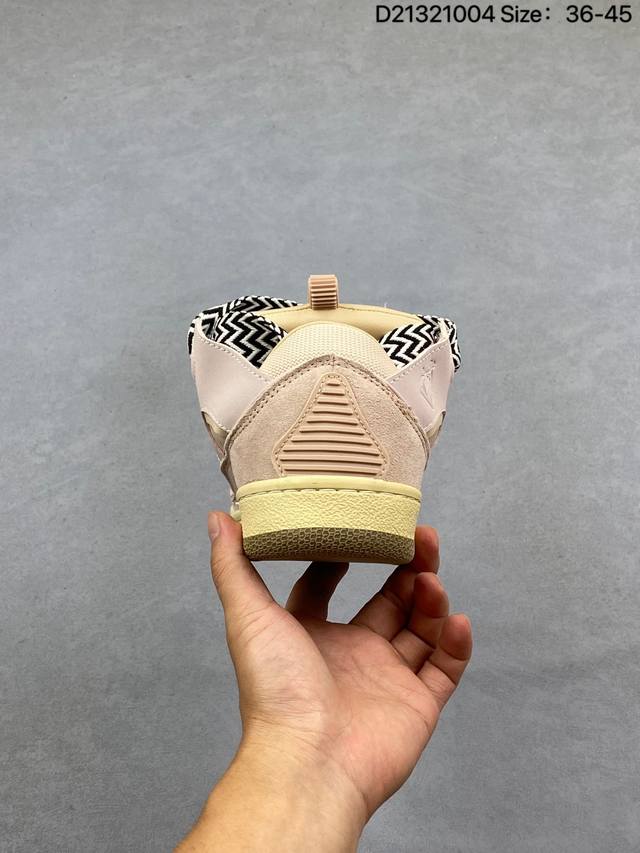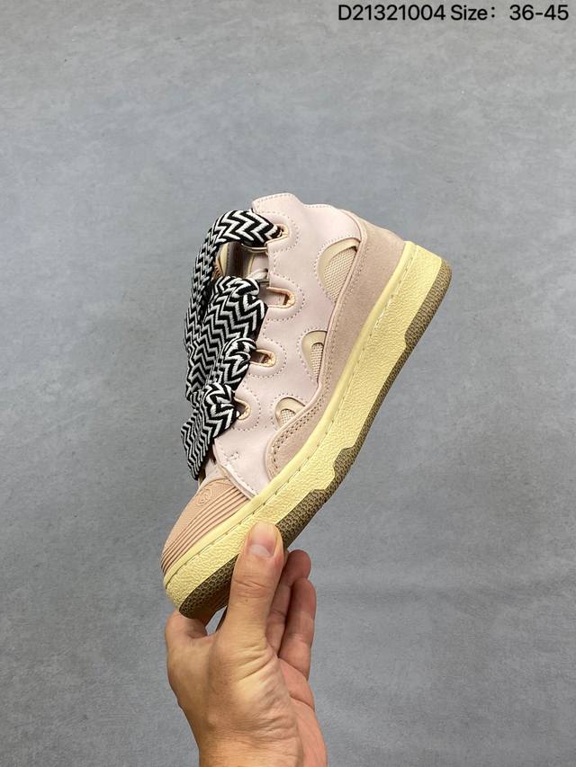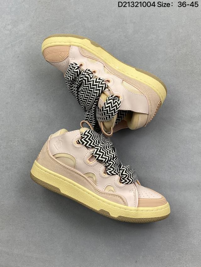公司级法国奢侈品牌 浪凡 Lanvin Curb Leather Low-Top Sneakers 复古街头系列低帮系带休闲运动滑板板鞋“樱花浅粉彩色涂鸦”Fm-Skrk11-Drgd- B5S0 尺码:36-45 编码:D21321004 Lanvin推荐Curb运动鞋,巧思设计在致敬滑板文化的同时增添玩趣意味,为日常造型增添与众不同的街头潮流属性,布鲁诺 西亚雷利 Bruno Sialelli 推出以90年代为灵感的全新运动鞋,彰显设计细腻、造型张扬的特点。这款设计精巧的拼贴运动鞋以纳帕小牛皮、绒面革