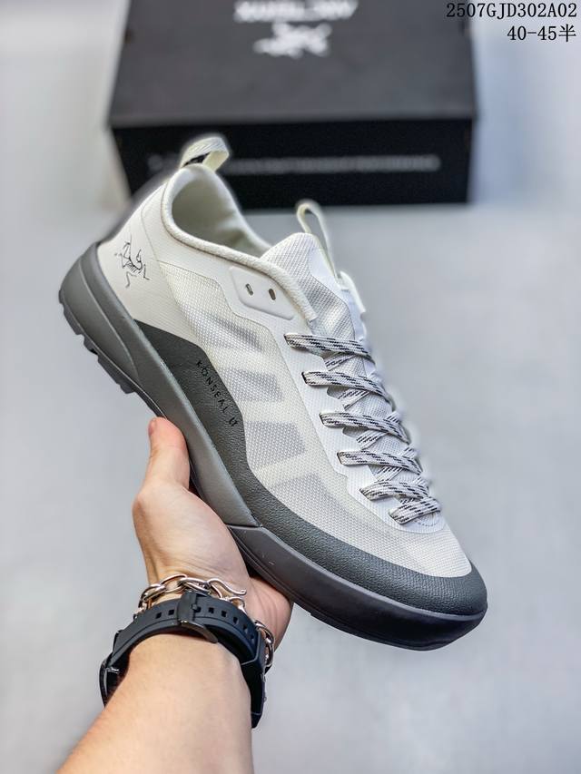 公司级真标升级原楦原纸版开发版型#采用同源一致一体成型热熔鞋面材质 带防泼水功能 #搭载85%压缩Eva缓震中底技术#独立开模Vibram黄金耐磨锯齿外底加拿大户外服饰品牌 始祖鸟 Arc‘Teryx Konseal Lt 未来之壳系列低帮轻量化透气越野徒步户外运动跑鞋“米白烟熏棕”L077216003-056244