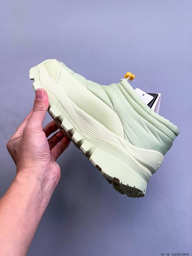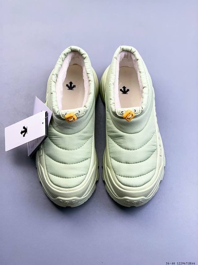 公司级 迪桑特Descente Skistyle系列 p棉 马卡龙厚底面包营地鞋 保暖防滑耐磨 生活休闲鞋 鞋口抽绳设计 不漏风 穿脱十分方便 高弹中底 外置米