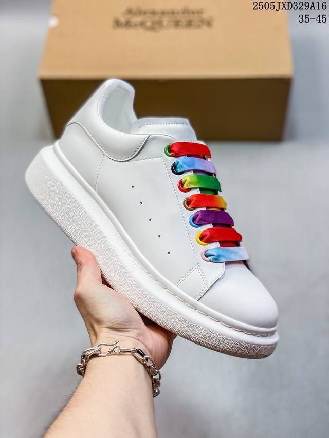 / 公司级 Alexandermcqueen 亚历山大 麦昆Mcq 运动小白鞋 厚底增高闪尾光滑牛皮平底鞋休闲鞋 时尚男女板鞋潮运动鞋 火爆到大街小巷无人不知 无人