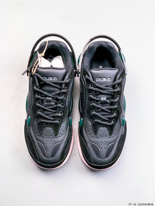 / 公司级 Raf Simons Cylon-21 潮流运动 织物皮革 圆头系带 低帮休闲鞋 采用光滑皮革 网眼和绒面革制成 饰有橡胶细节 具有系带封口 圆头款式