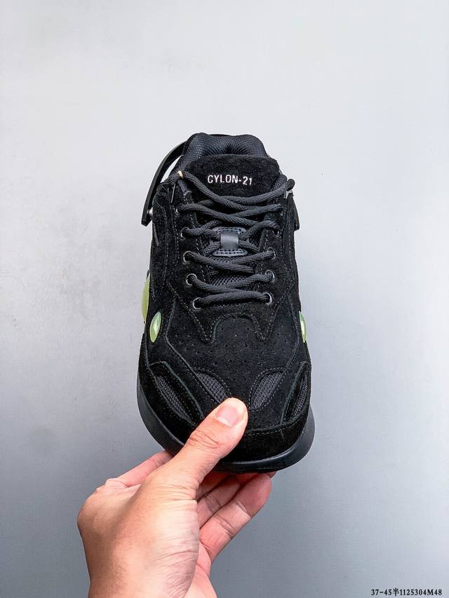 公司级 Raf Simons Cylon-21 潮流运动 织物皮革 圆头系带 低帮休闲鞋 DDD 采用光滑皮革 网眼和绒面革制成 饰有橡胶细节 具有系带封口 圆头款式 织物衬里和带凸起徽标的橡胶鞋底 鞋舌上的印花和鞋跟处的可互换塑料配件完善了设计 DDD 货号:Hr740007S-0047 DDD 1125304M48 DDD