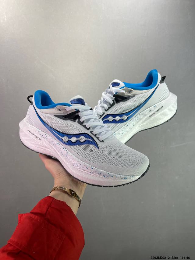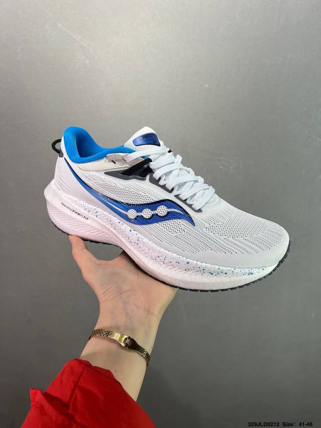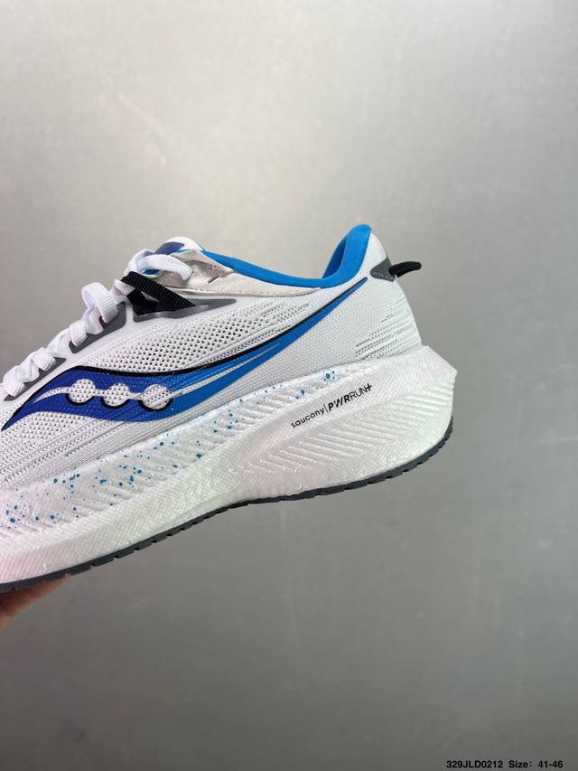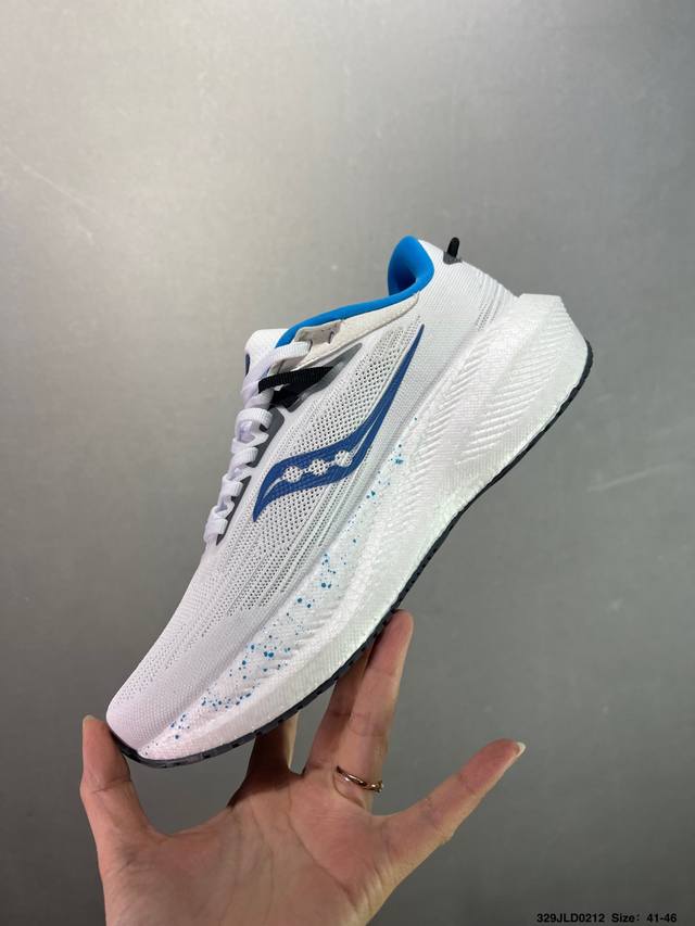 公司级 Saucony Triumph 索康尼胜利旗舰级缓震型跑鞋 性能相比前几代再升级:鞋面采用全新升级的工学网设计 贴合脚部更透气 中底部分使用最新的Pwrrun+材质 搭配Pwrrun+鞋垫使中底的大幅加厚 10Mm坡差进一步提供缓震、回弹性能 内底则采用了Formfit动态适应系统 动态契合脚型 提升包裹性和舒适性 提供更卓越的动态回馈体验 Xt-900橡胶大底 可提供良好的抓地力和较强抗磨性能 Size:35.5 36 36.5 37.5 38 38.5 39 40 40.5 41 42 42.