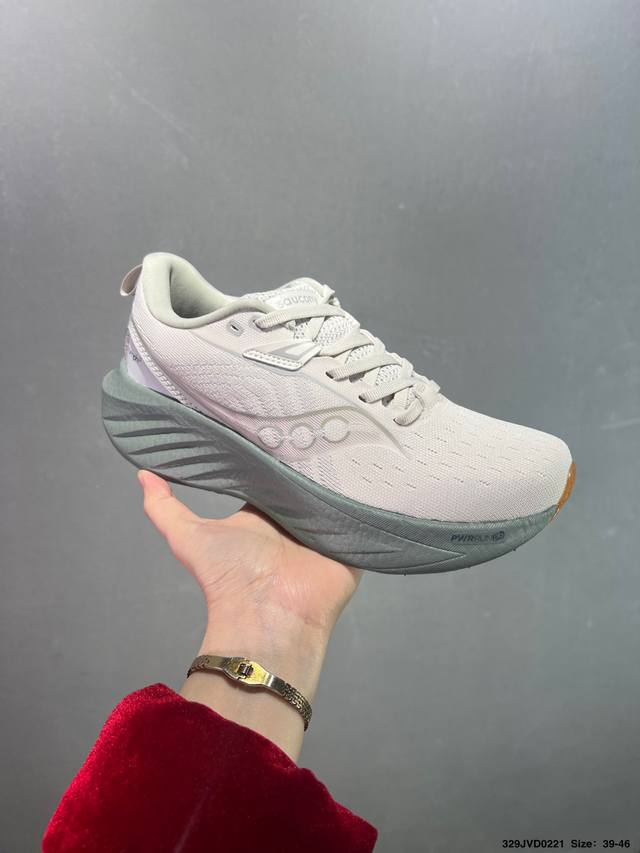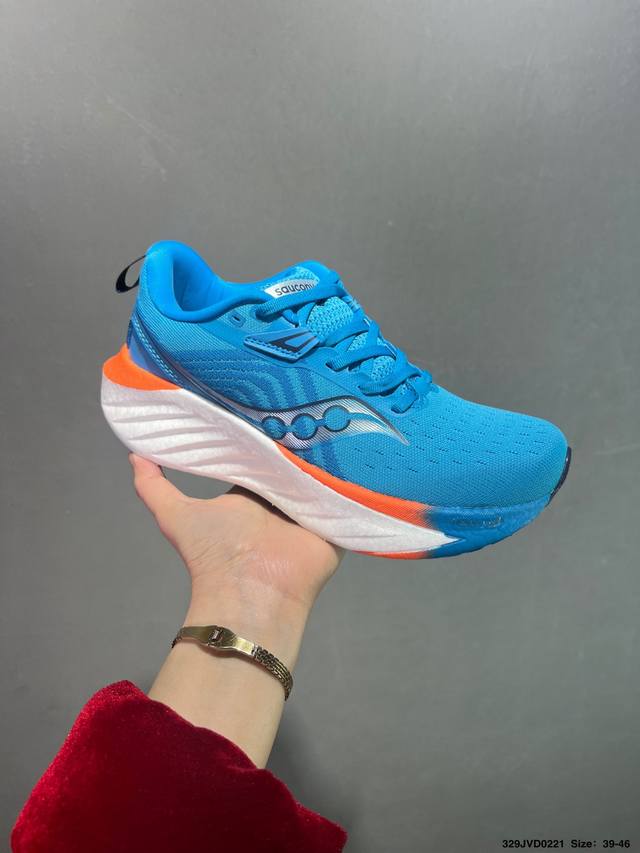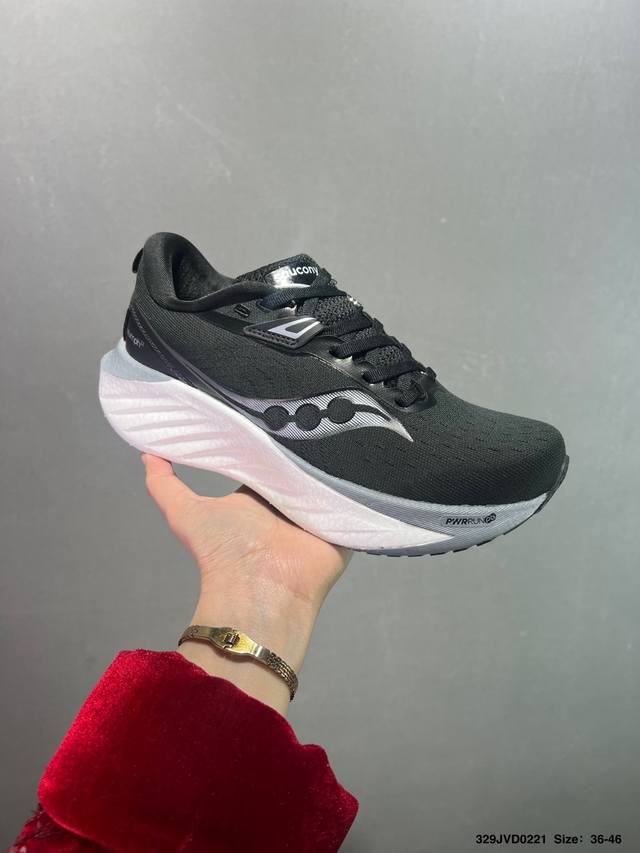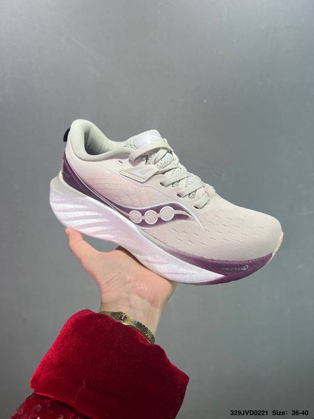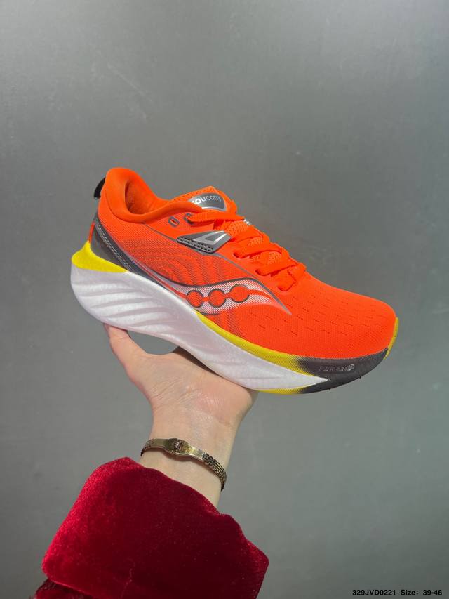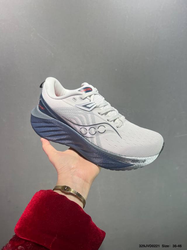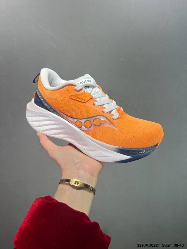 公司级 Saucony Triumph 索康尼胜利旗舰级缓震型跑鞋 性能相比前几代再升级:鞋面采用全新升级的工学网设计 贴合脚部更透气 中底部分使用最新的Pwrrun+材质 搭配Pwrrun+鞋垫使中底的大幅加厚 10Mm坡差进一步提供缓震、回弹性能 内底则采用了Formfit动态适应系统 动态契合脚型 提升包裹性和舒适性 提供更卓越的动态回馈体验 Xt-900橡胶大底 可提供良好的抓地力和较强抗磨性能 Size:35.5 36 36.5 37.5 38 38.5 39 40 40.5 41 42 42.