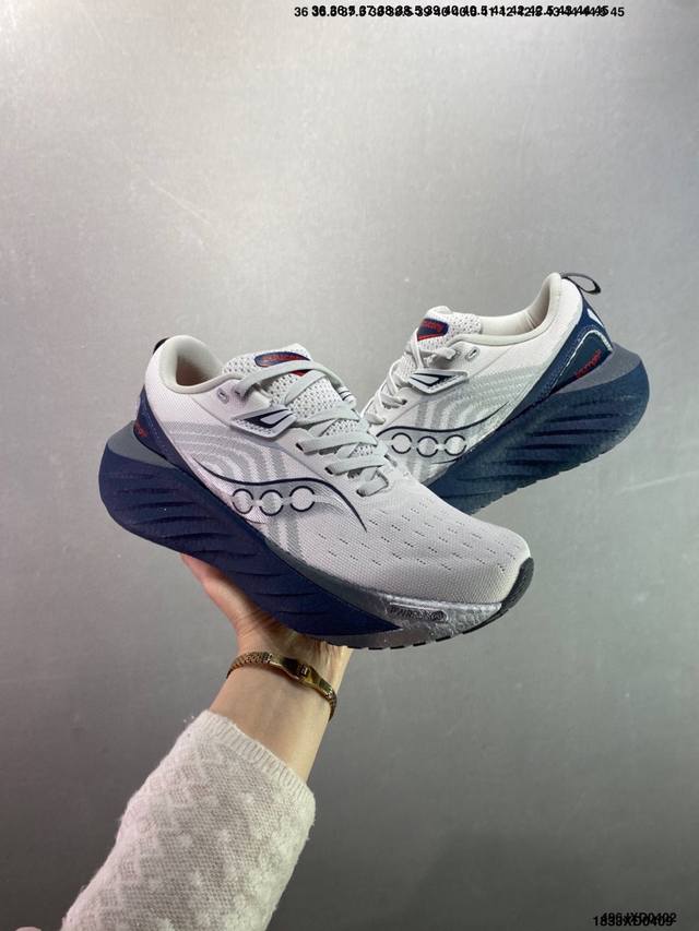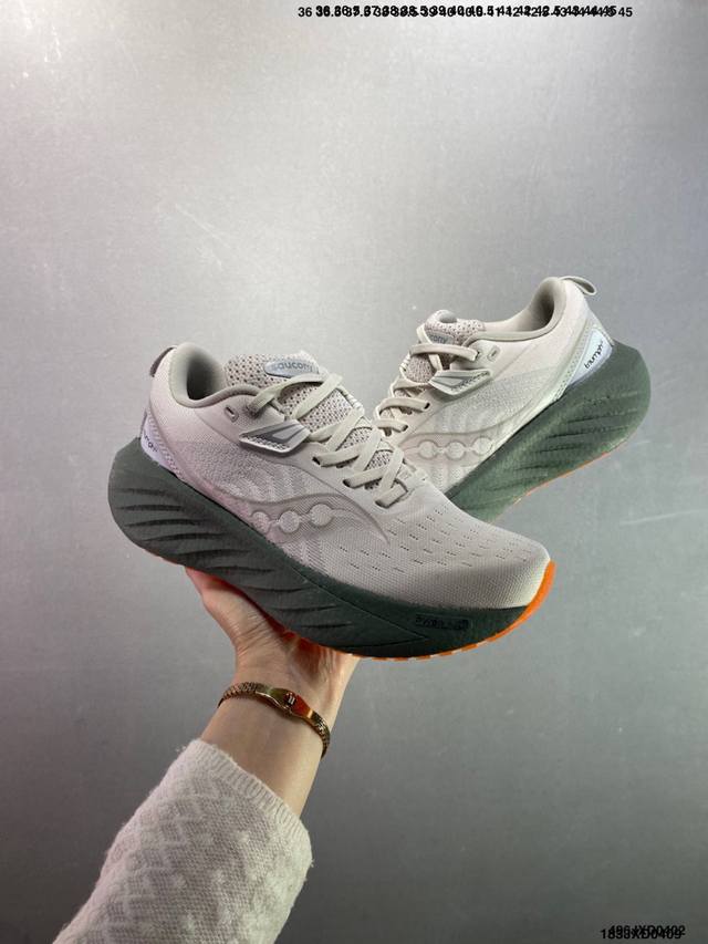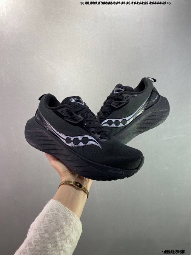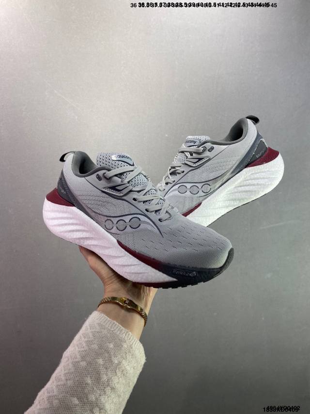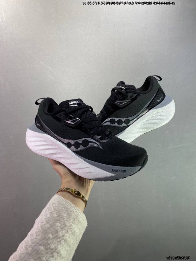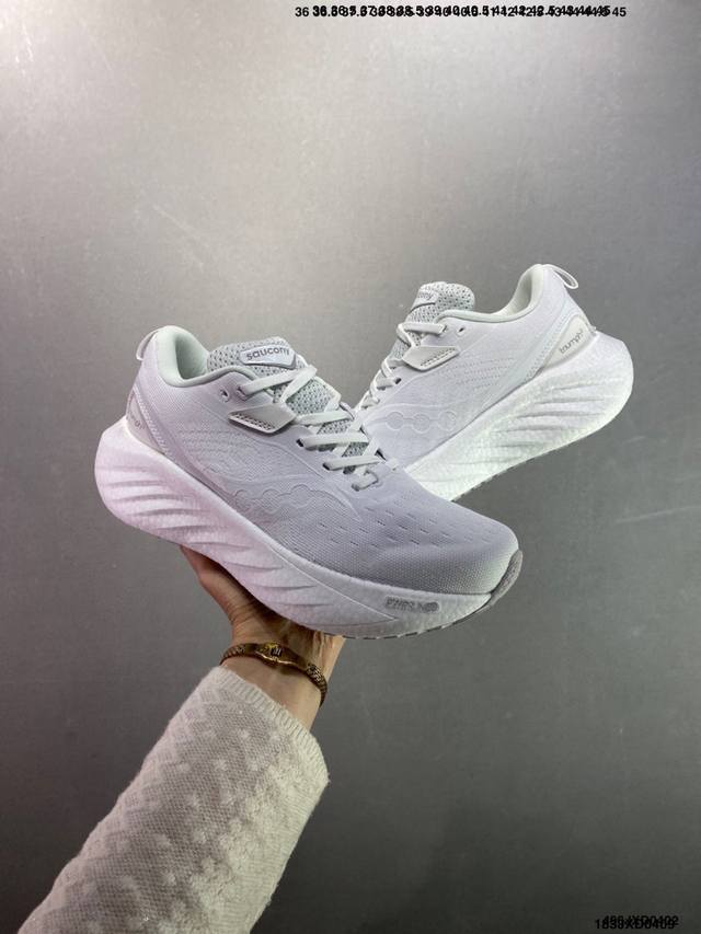公司级 Saucony Triumph 索康尼胜利旗舰级缓震型跑鞋 性能相比前几代再升级:鞋面采用全新升级的工学网设计 贴合脚部更透气 中底部分使用最新的Pwrrun+材质 搭配Pwrrun+鞋垫使中底的大幅加厚 10Mm坡差进一步提供缓震、回弹性能 内底则采用了Formfit动态适应系统 动态契合脚型 提升包裹性和舒适性 提供更卓越的动态回馈体验 Xt-900橡胶大底 可提供良好的抓地力和较强抗磨性能 Size:35.5 36 36.5 37.5 38 38.5 39 40 40.5 41 42 42.