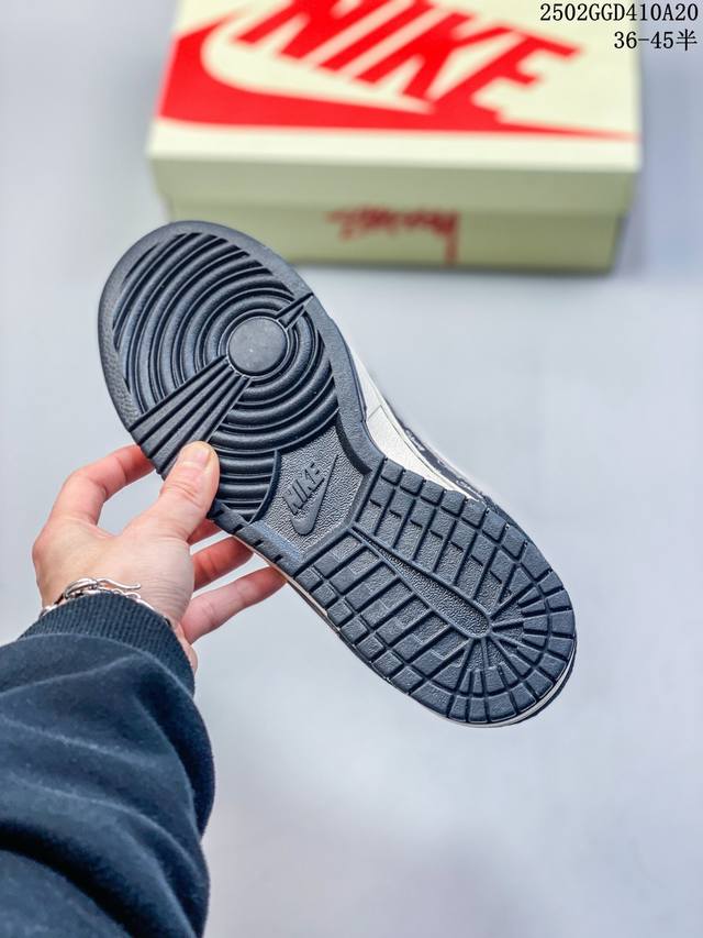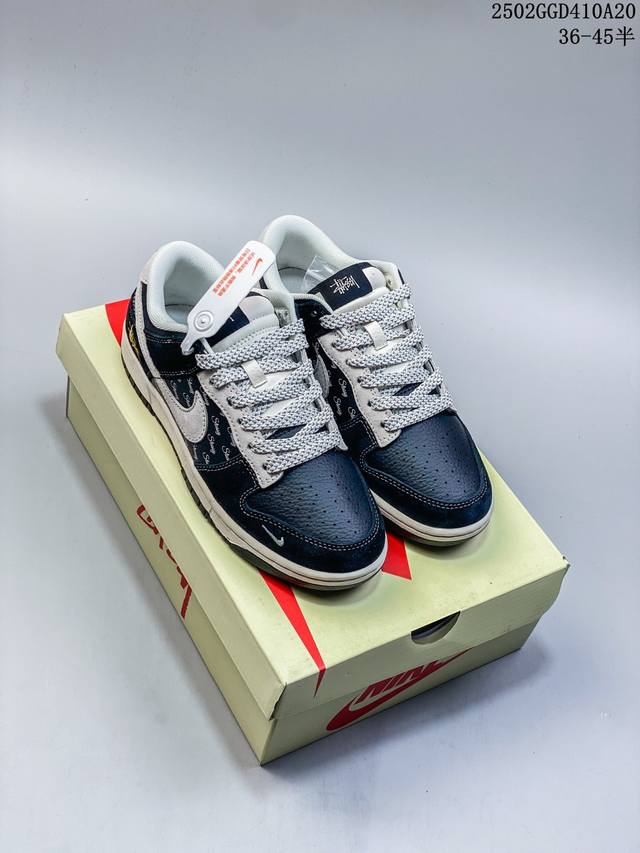 公司级 #Sb Duck Low斯图西联名“黑色灰勾印花配色高奢定制款” 个性的设计风格以及品牌的经典元素 使其成为一双具有独特身份和价值的鞋子 清新而立体的外观加上联名标识更突出了其独特身份 这种配色方案显示出活力和时尚感 在视觉上引人注目 鞋身的质感和细腻的细节处理使其显得高端而格调十足 这款“Sb”联名是设计与创意完美结合 融合多方的个性风格是一款备受瞩目的潮流鞋款 低帮休闲板鞋 定制鞋盒 大厂纯原品质出货 超高清洁度 皮料切割干净无任何毛边 细节完美