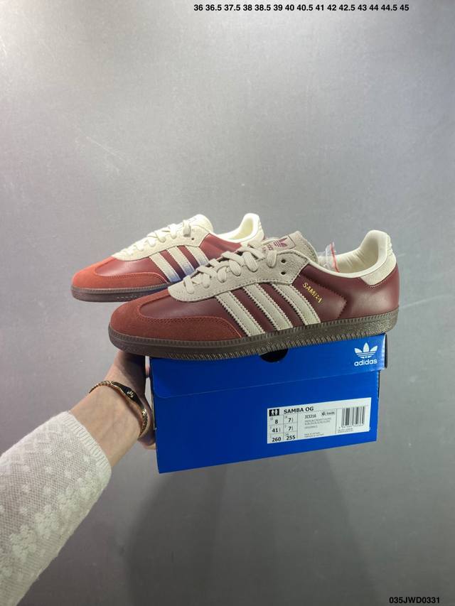 公司级Ad Original Samba Og 复古经典轻便板鞋 Ji3216 头层牛皮加持 正确烫金高频细节 原装纳米超迁皮料 独家私模橡胶大底 原盒原配 这款桑巴鞋展示了高质量的工艺 带有装饰的超锁缝制和无缝的手感 柔软、柔软的皮革造型和标志性的3条纹完成了精致的外观 正规合身鞋带 鞋面上有绒面鞋垫 橡胶鞋底 享受正畸套筒软感 自50年代首次亮相以来就一直在赢得粉丝的青睐 Size:36 36.5 37.5 38 38.5 39 40 40.5 41 42 42.5 43 44 44.5 45