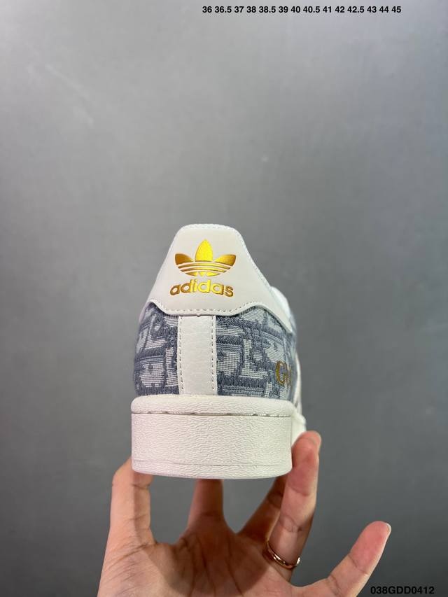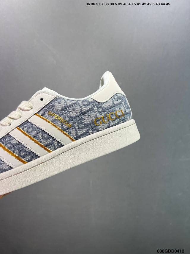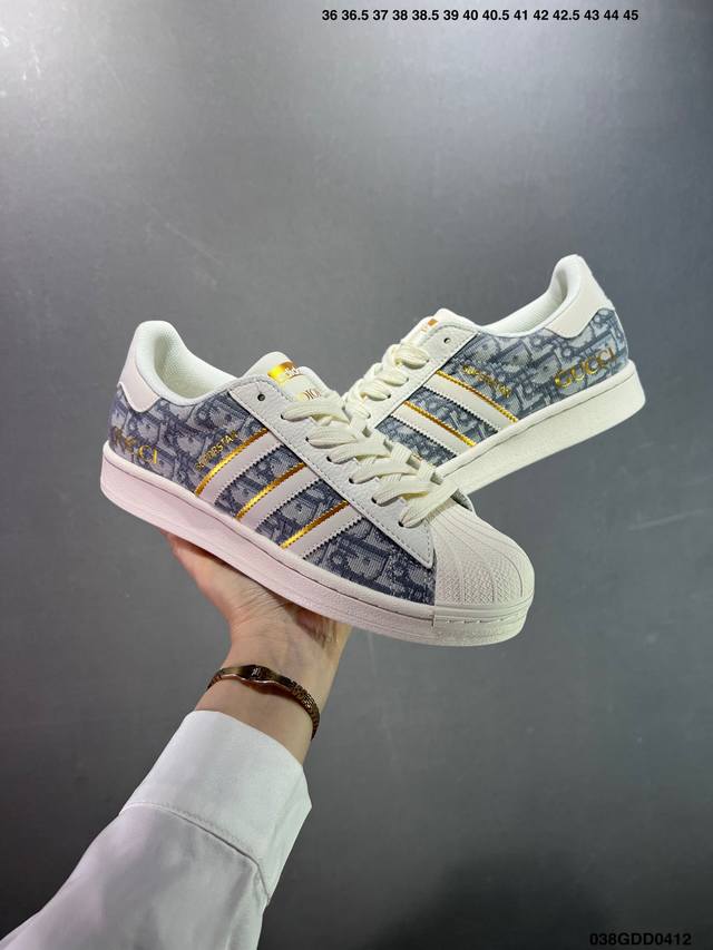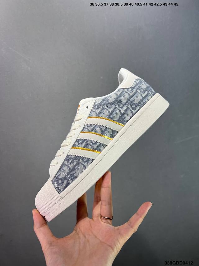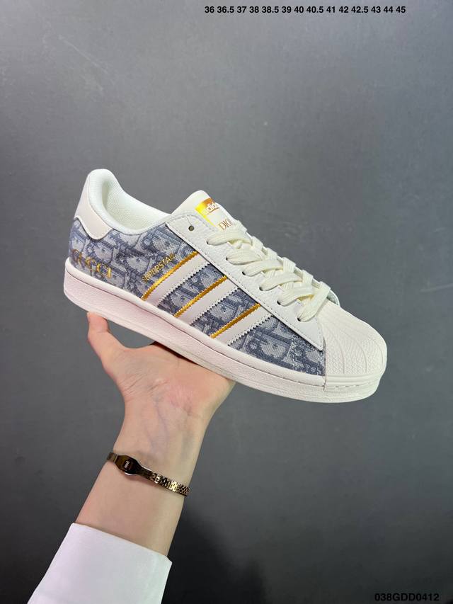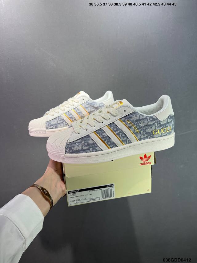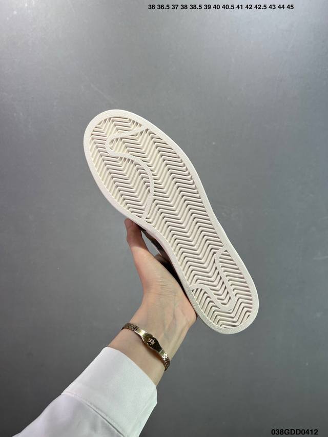 公司级Ad Originals Superstar 经典复古贝壳头板鞋 J P9300 诞生于1969年 是第一双将全皮面鞋 身与橡胶鞋头结合在一起的低帮篮球鞋 Superstar最开始 是作为高帮篮球鞋Pro Model的低帮版本而出现的 但因为其独特和醒目的橡胶鞋头造型而让大家熟知 被大家形象地称为”Shelltoe“贝壳头 在70年代的美国职业篮球场上 接近3 4的Nba球员都将这双Superstar作为场上用鞋 80年代之后 经过不断的改良和发展 Superstar逐渐成为横跨时装、音乐、街头文化