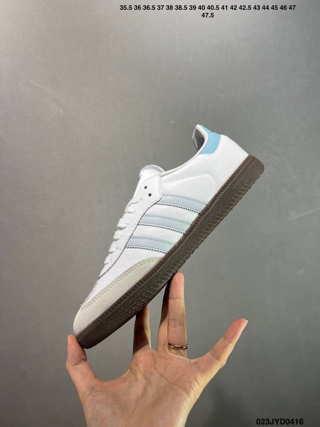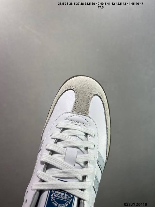 复古桑巴板鞋 这款桑巴鞋展示了高质量的工艺 带有装饰的超锁缝制和无缝的手感 柔软、柔软的皮革造型和标志性的3条纹完成了精致的外观 正规合身鞋带 鞋面上有绒面鞋垫 橡胶鞋底 享受正畸套筒软感 自50年代首次亮相以来就一直在赢得粉丝的青睐