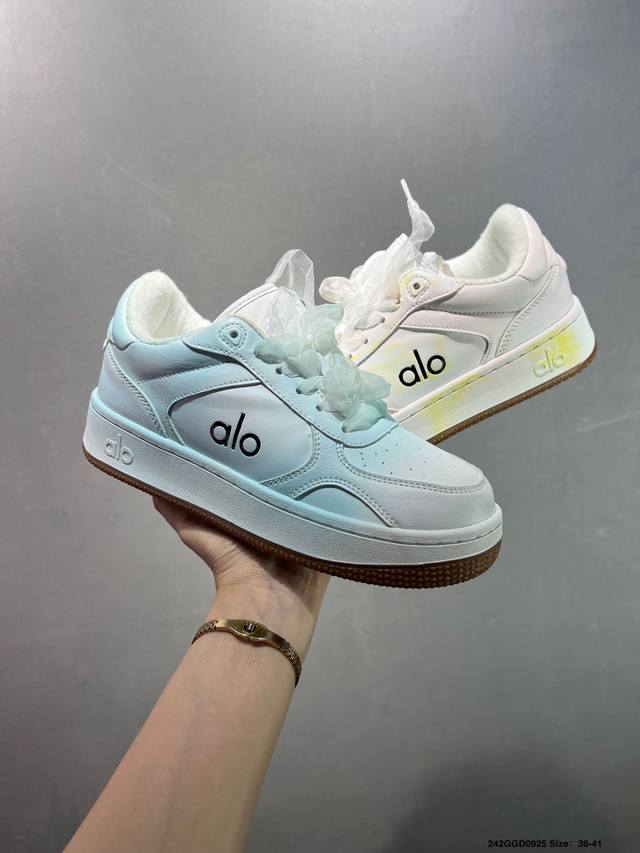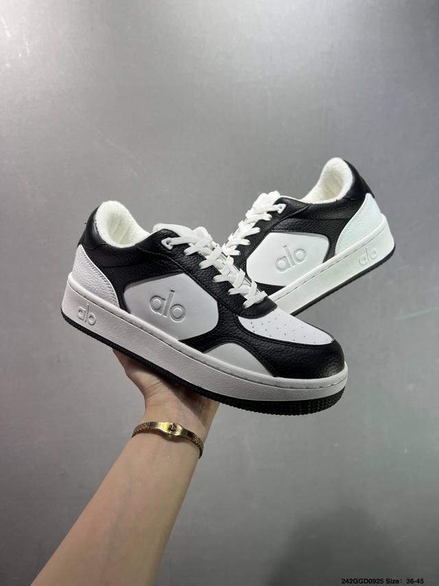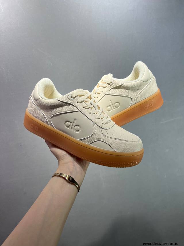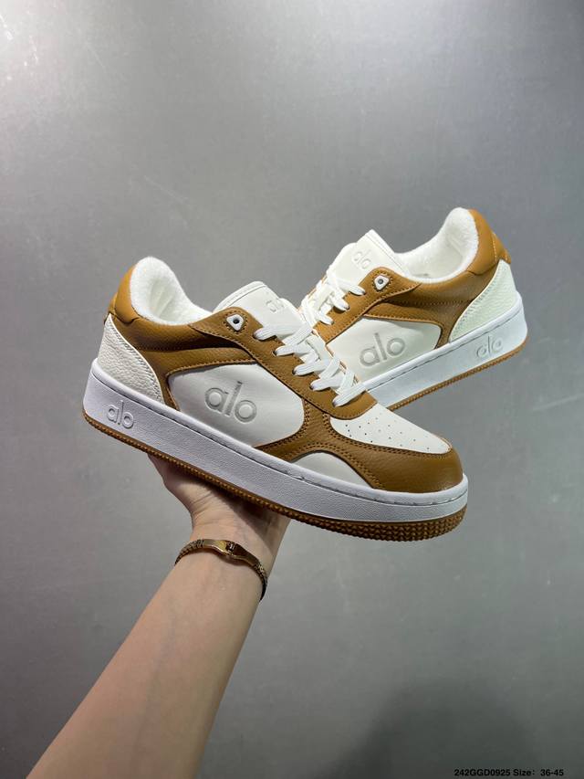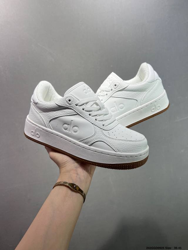 / 公司级Alo Yoga Recovery Mode 百搭轻便 防滑减震低帮板鞋 鞋底有一圈咖啡色点缀的橡胶底,鞋垫巨厚,起码增高3、4厘米,还附赠一副纯白鞋带。
