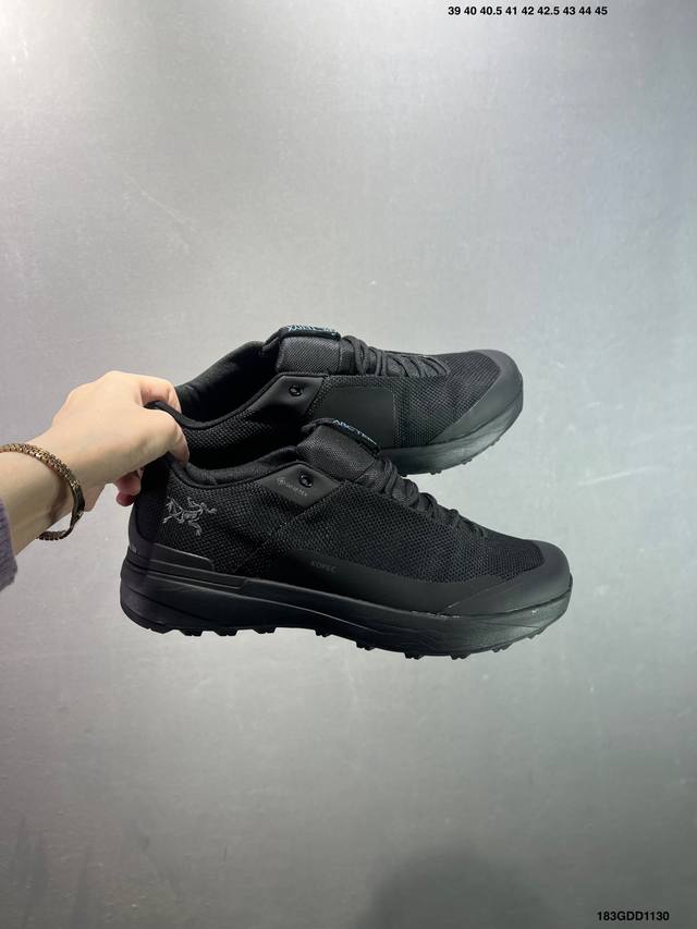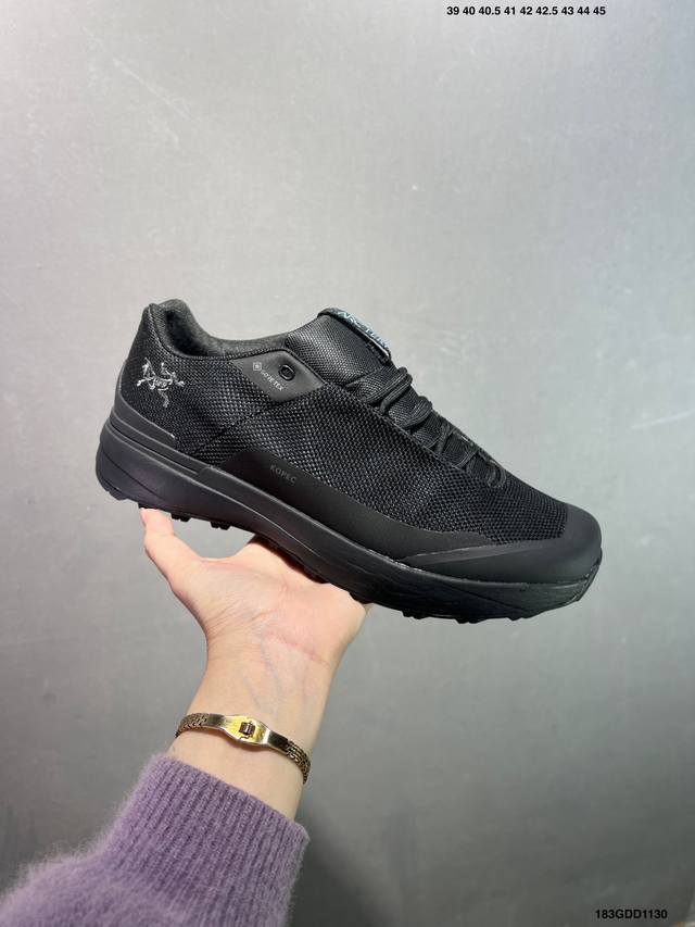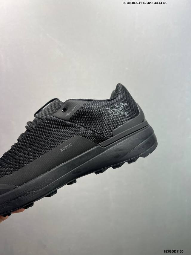 公司级Arcteryx始祖鸟 Norvan Kopec Gtx 覆盖防水 低帮户外登山徒步鞋 DDD 特有的独立衬垫 穿着更合脚 带有Gore-Tex防水内衬 提供透气性和防风雨性能 同时内靴带有橡胶平底 与外靴分离后可单独作为营地鞋使用 鞋面为无缝层压拼接的4层结构 兼顾耐久和轻量 并提供足够的透气性 中底使用轻量的Eva泡沫制成 轻量柔软具有弹性 并吸收脚部作用力 Bora系列的Vibram大底通过不同模块的组合 使其具备了较好的支撑性和抓地力 在脚跟部位特别设计了Y型突起结构,稳定脚部动作 提升制动