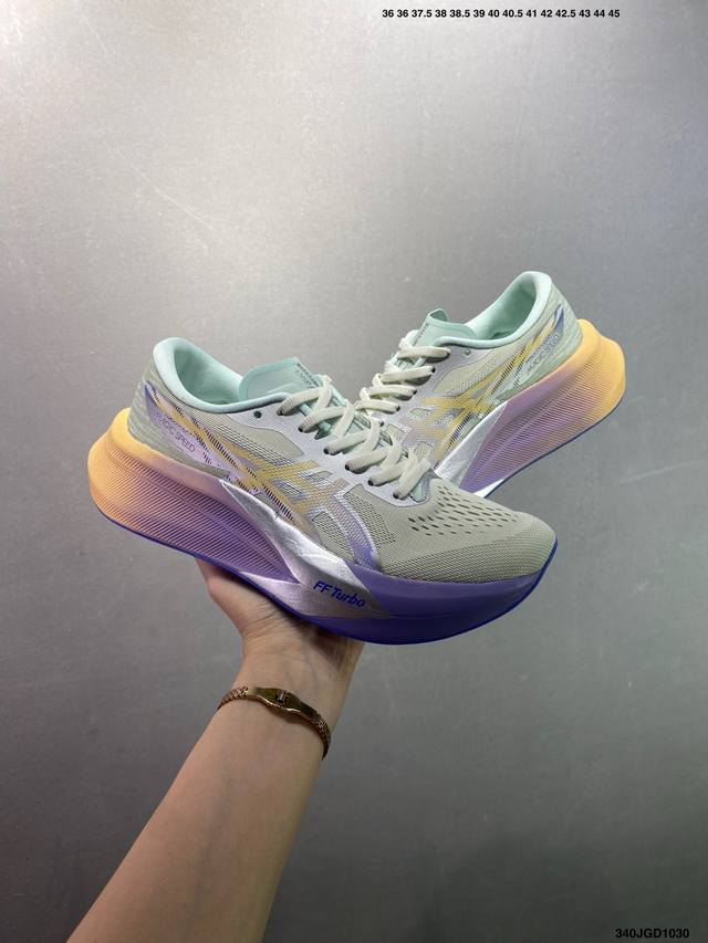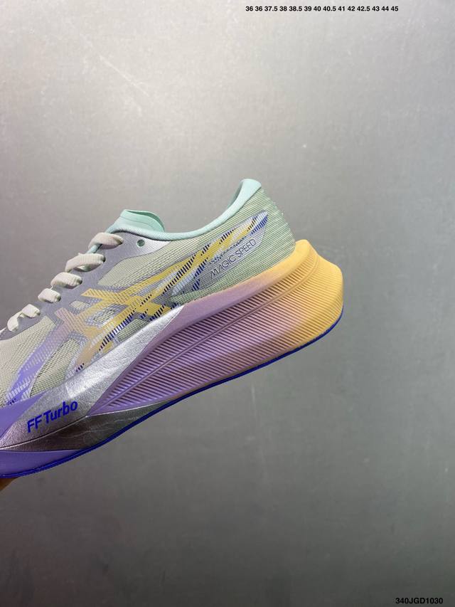 公司级Asics 亚瑟士Magic Speed 4稳定跑鞋鞋面 采用双层提花网面设计 提高包裹性和透气性 后跟搭载稳定系统科技T-Gel提升整体支撑力和结构感 减少对身体带来的冲击负荷 创新中底至轻回弹 货号:1011C178-200 尺码:如图 编码:340Jgd1030