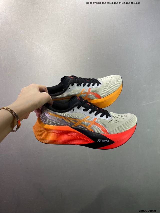/ 公司级Asics 亚瑟士Magic Speed 4稳定跑鞋鞋面 采用双层提花网面设计 提高包裹性和透气性 后跟搭载稳定系统科技T-Gel提升整体支撑力和结构感