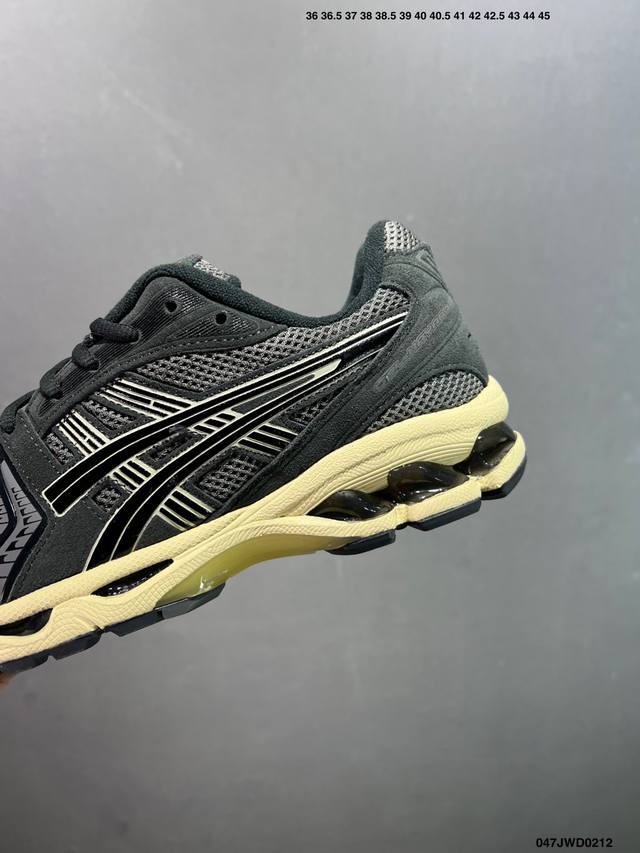 亚瑟士系列轻量缓震休闲运动跑步鞋 设计师 Hidenori Yamashita 以 Flash 一词为灵感,创造出未来感金属色鞋面,改造升级内在性能,由内而外全面革新,为 Gel-Kayano 家族传承及经典跑鞋文化的延续,创下里程碑式作品。Asics Gel Kayano 14 跑鞋重新诠释了复古的跑步形状,并以其 2000 年代后期的美学理念重新铺装,银色与蓝色的鞋面极为高档.网面铺陈与鞋面、鞋头多处细节位增添了透气性。Asics Gel Ka