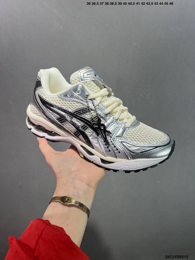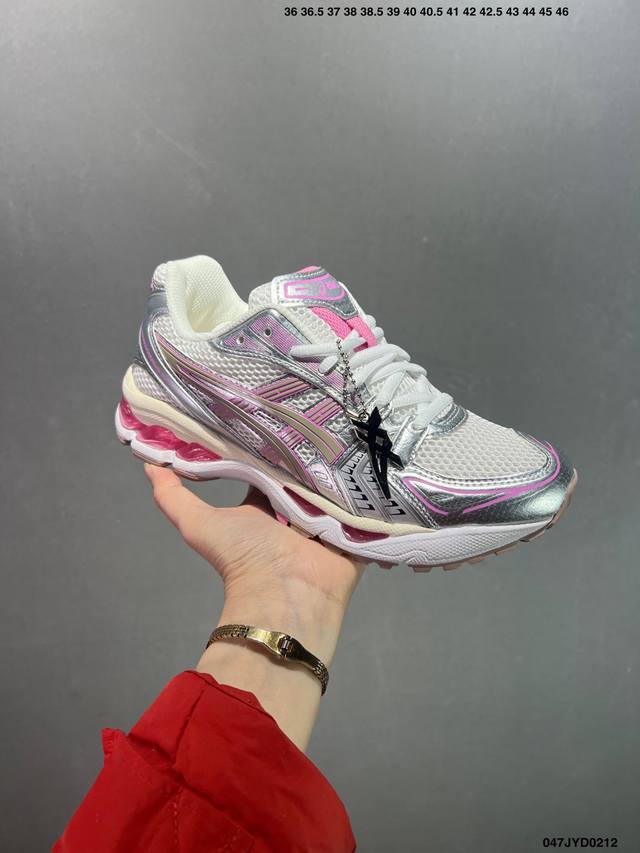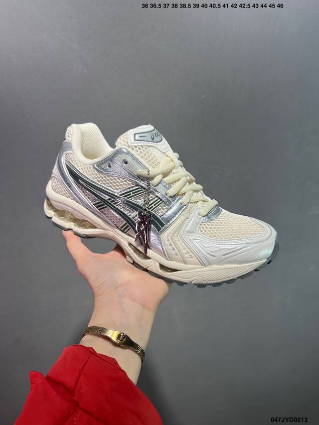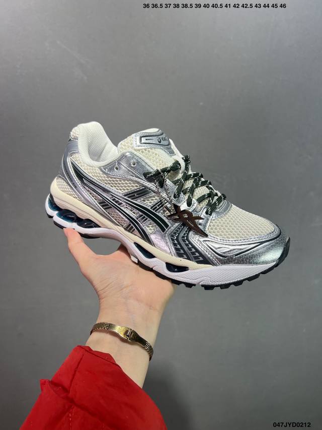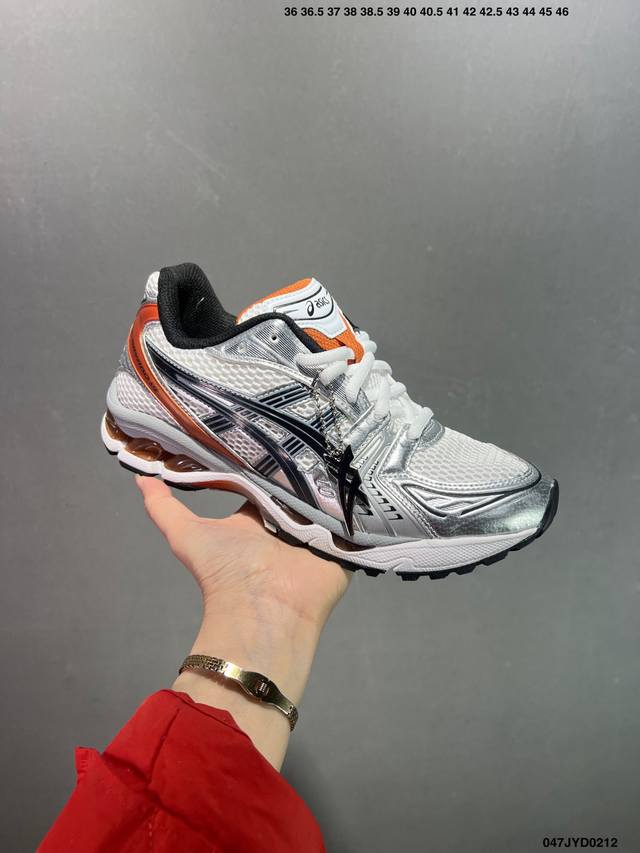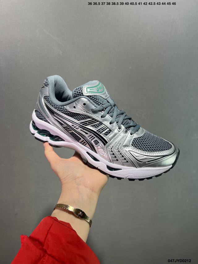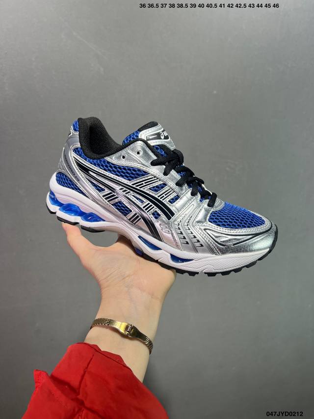 亚瑟士系列轻量缓震休闲运动跑步鞋 设计师 Hidenori Yamashita 以 Flash 一词为灵感,创造出未来感金属色鞋面,改造升级内在性能,由内而外全面革新,为 Gel-Kayano 家族传承及经典跑鞋文化的延续,创下里程碑式作品。Asics Gel Kayano 14 跑鞋重新诠释了复古的跑步形状,并以其 2000 年代后期的美学理念重新铺装,银色与蓝色的鞋面极为高档.网面铺陈与鞋面、鞋头多处细节位增添了透气性。Asics Gel Ka