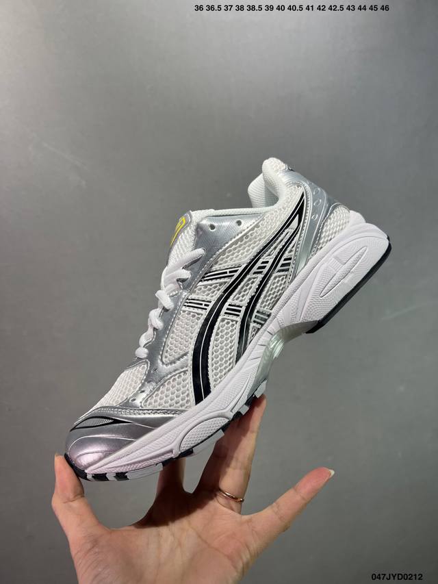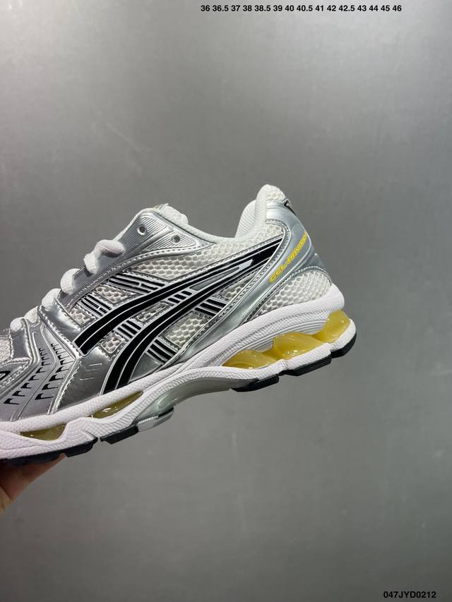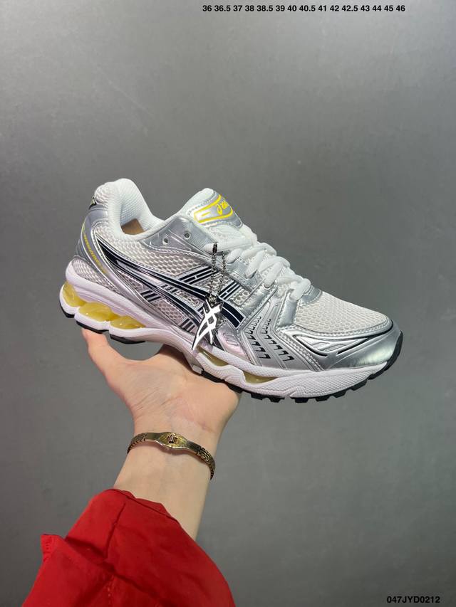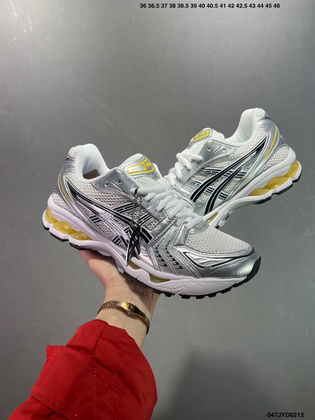 亚瑟士系列轻量缓震休闲运动跑步鞋 设计师 Hidenori Yamashita 以 Flash 一词为灵感,创造出未来感金属色鞋面,改造升级内在性能,由内而外全面革新,为 Gel-Kayano 家族传承及经典跑鞋文化的延续,创下里程碑式作品。Asics Gel Kayano 14 跑鞋重新诠释了复古的跑步形状,并以其 2000 年代后期的美学理念重新铺装,银色与蓝色的鞋面极为高档.网面铺陈与鞋面、鞋头多处细节位增添了透气性。Asics Gel Ka