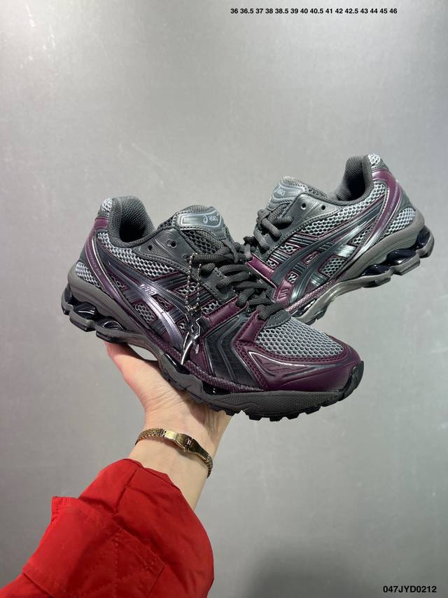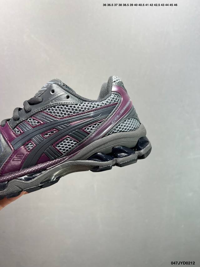 亚瑟士系列轻量缓震休闲运动跑步鞋 设计师 Hidenori Yamashita 以 Flash 一词为灵感,创造出未来感金属色鞋面,改造升级内在性能,由内而外全面革新,为 Gel-Kayano 家族传承及经典跑鞋文化的延续,创下里程碑式作品。Asics Gel Kayano 14 跑鞋重新诠释了复古的跑步形状,并以其 2000 年代后期的美学理念重新铺装,银色与蓝色的鞋面极为高档.网面铺陈与鞋面、鞋头多处细节位增添了透气性。Asics Gel Ka