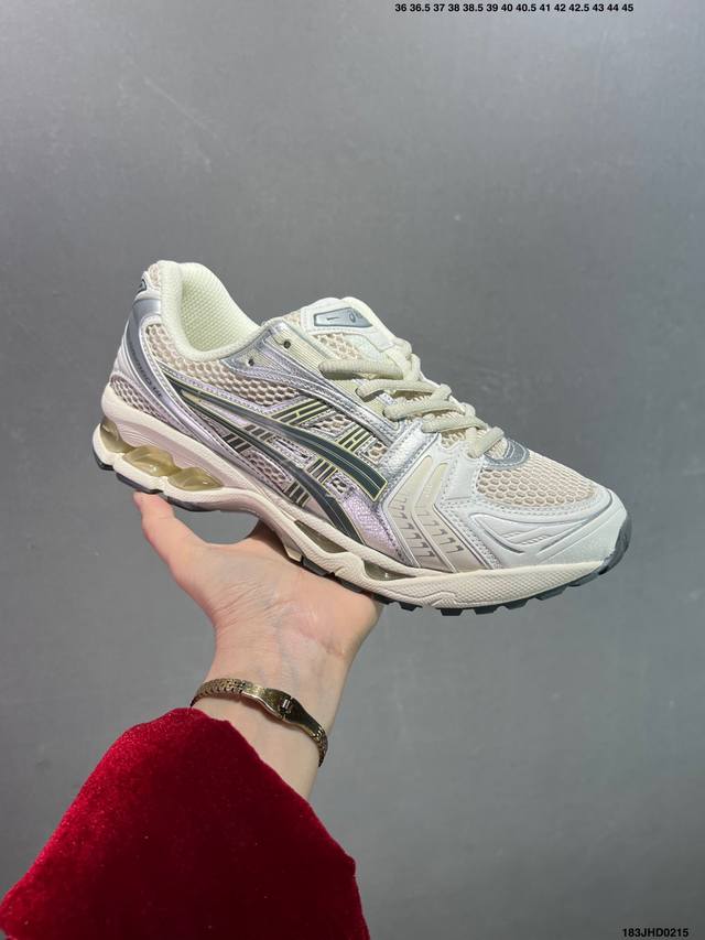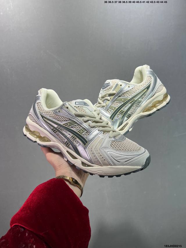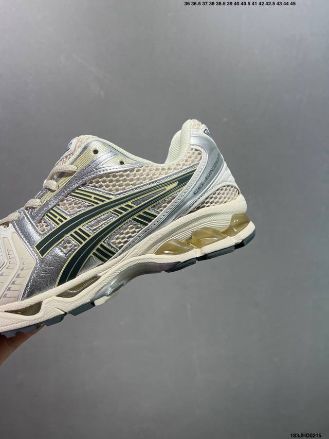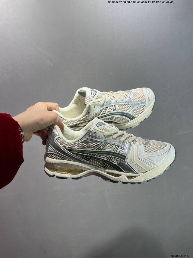 亚瑟士系列轻量缓震休闲运动跑步鞋 设计师 Hidenori Yamashita 以 Flash 一词为灵感,创造出未来感金属色鞋面,改造升级内在性能,由内而外全面革新,为 Gel-Kayano 家族传承及经典跑鞋文化的延续,创下里程碑式作品。Asics Gel Kayano 14 跑鞋重新诠释了复古的跑步形状,并以其 2000 年代后期的美学理念重新铺装,银色与蓝色的鞋面极为高档.网面铺陈与鞋面、鞋头多处细节位增添了透气性。Asics Gel Ka