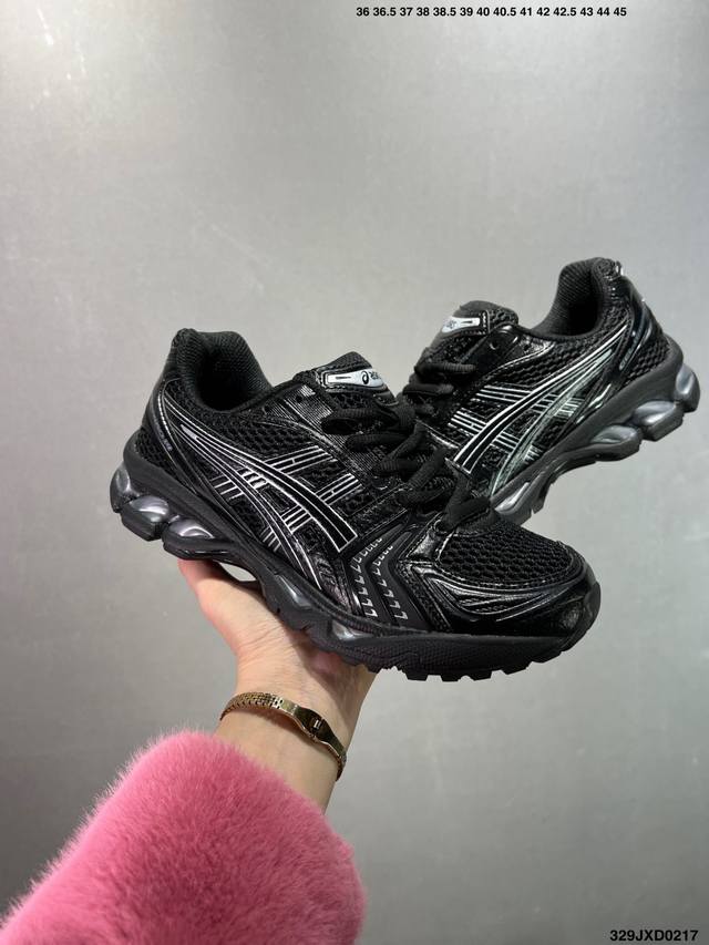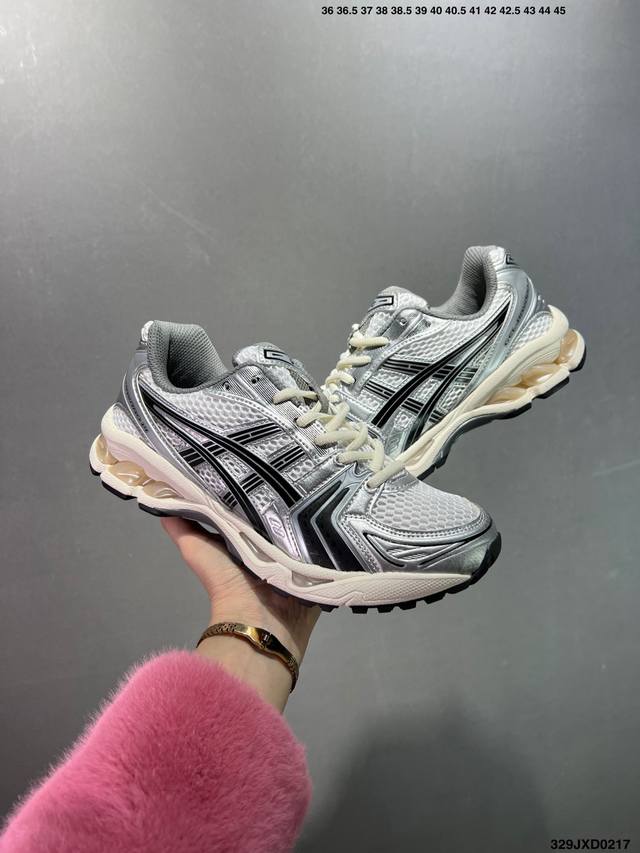 亚瑟士系列轻量缓震休闲运动跑步鞋 设计师 Hidenori Yamashita 以 Flash 一词为灵感,创造出未来感金属色鞋面,改造升级内在性能,由内而外全面革新,为 Gel-Kayano 家族传承及经典跑鞋文化的延续,创下里程碑式作品。Asics Gel Kayano 14 跑鞋重新诠释了复古的跑步形状,并以其 2000 年代后期的美学理念重新铺装,银色与蓝色的鞋面极为高档.网面铺陈与鞋面、鞋头多处细节位增添了透气性。Asics Gel Ka