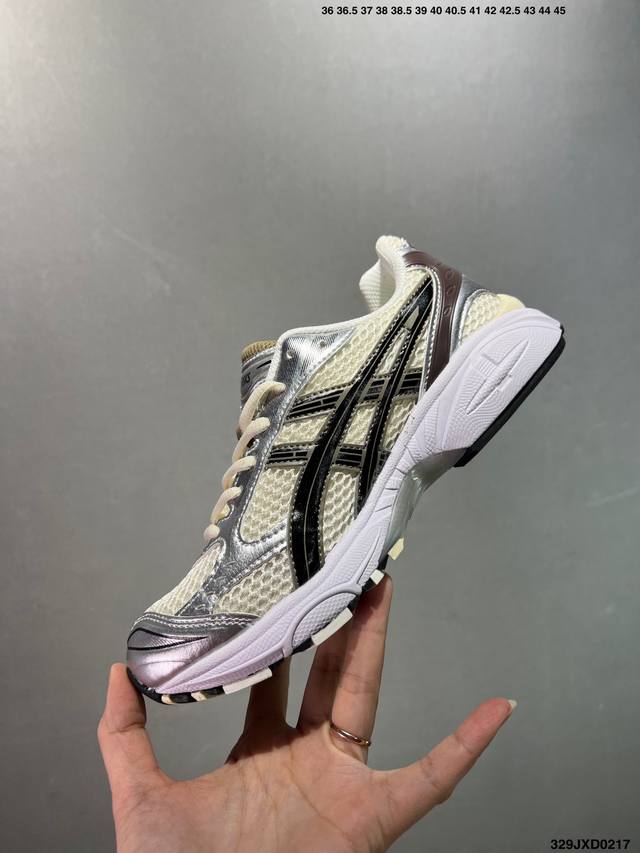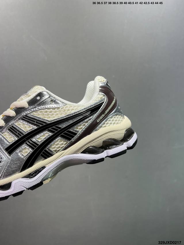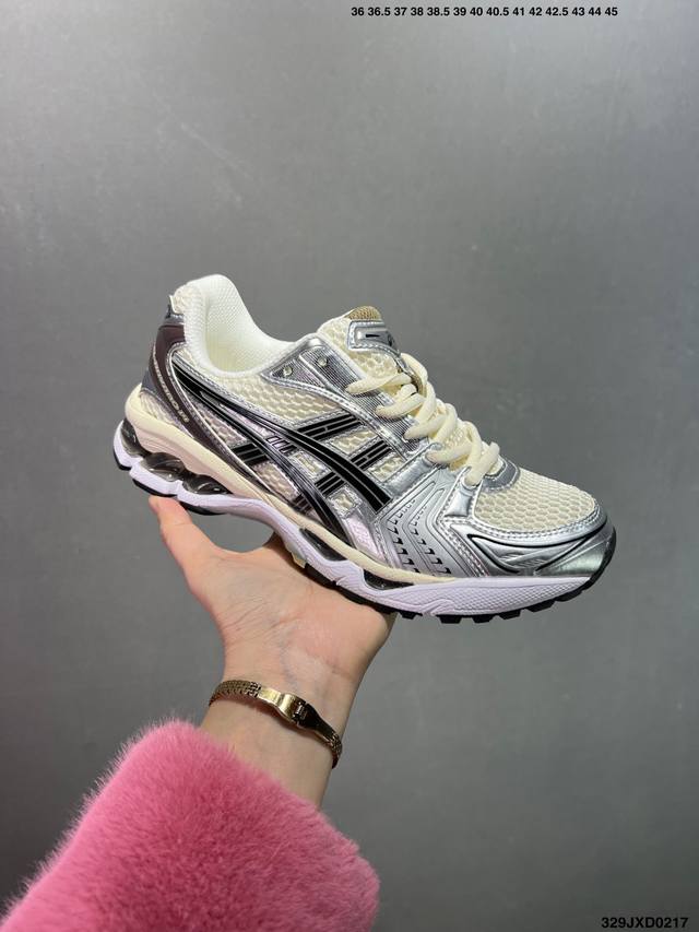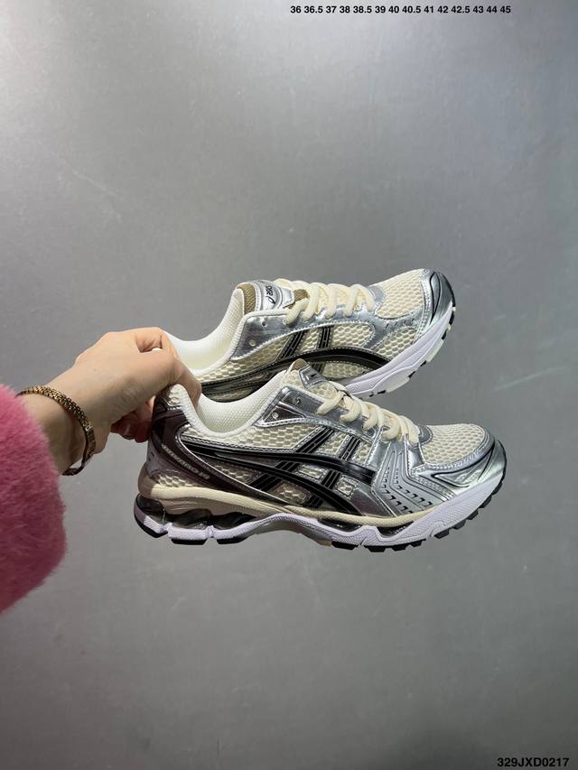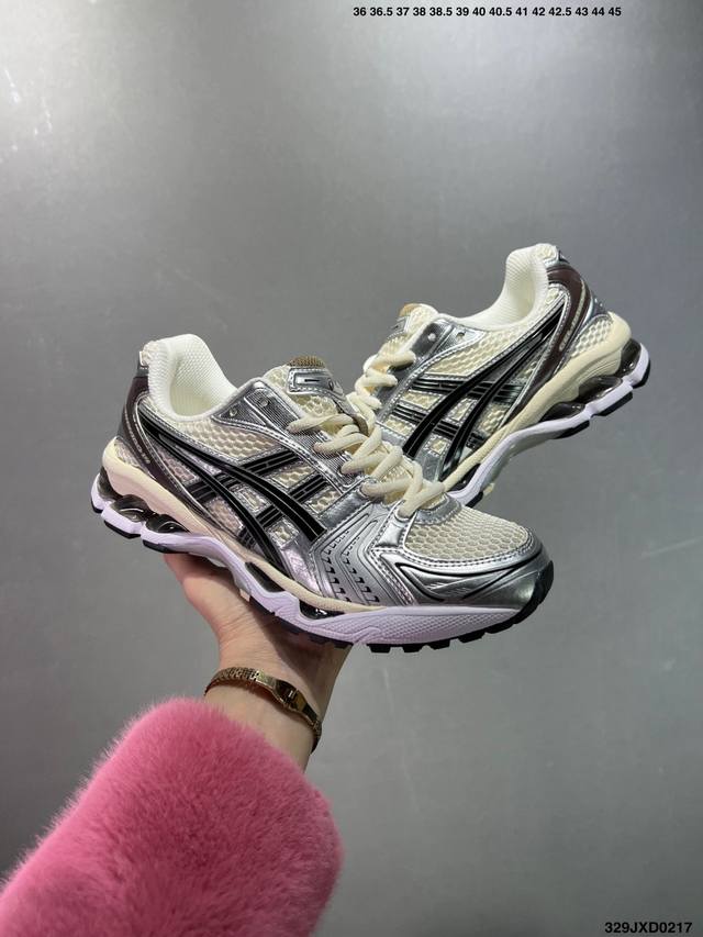 亚瑟士系列轻量缓震休闲运动跑步鞋 设计师 Hidenori Yamashita 以 Flash 一词为灵感,创造出未来感金属色鞋面,改造升级内在性能,由内而外全面革新,为 Gel-Kayano 家族传承及经典跑鞋文化的延续,创下里程碑式作品。Asics Gel Kayano 14 跑鞋重新诠释了复古的跑步形状,并以其 2000 年代后期的美学理念重新铺装,银色与蓝色的鞋面极为高档.网面铺陈与鞋面、鞋头多处细节位增添了透气性。Asics Gel Ka