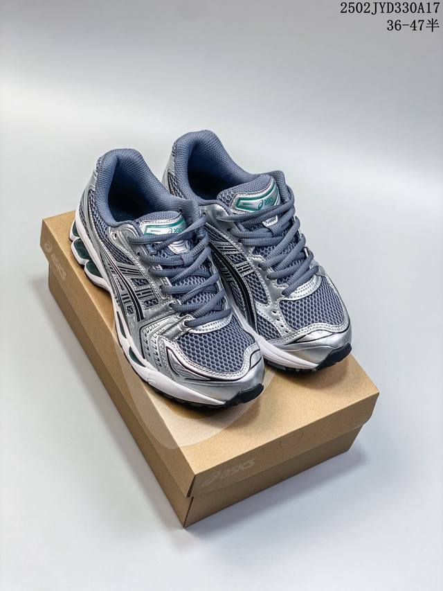 亚瑟士系列轻量缓震休闲运动跑步鞋 设计师 Hidenori Yamashita 以 Flash 一词为灵感,创造出未来感金属色鞋面,改造升级内在性能,由内而外全面革新,为 Gel-Kayano 家族传承及经典跑鞋文化的延续,创下里程碑式作品。Asics Gel Kayano 14 跑鞋重新诠释了复古的跑步形状,并以其 2000 年代后期的美学理念重新铺装,银色与蓝色的鞋面极为高档.网面铺陈与鞋面、鞋头多处细节位增添了透气性。Asics Gel Ka