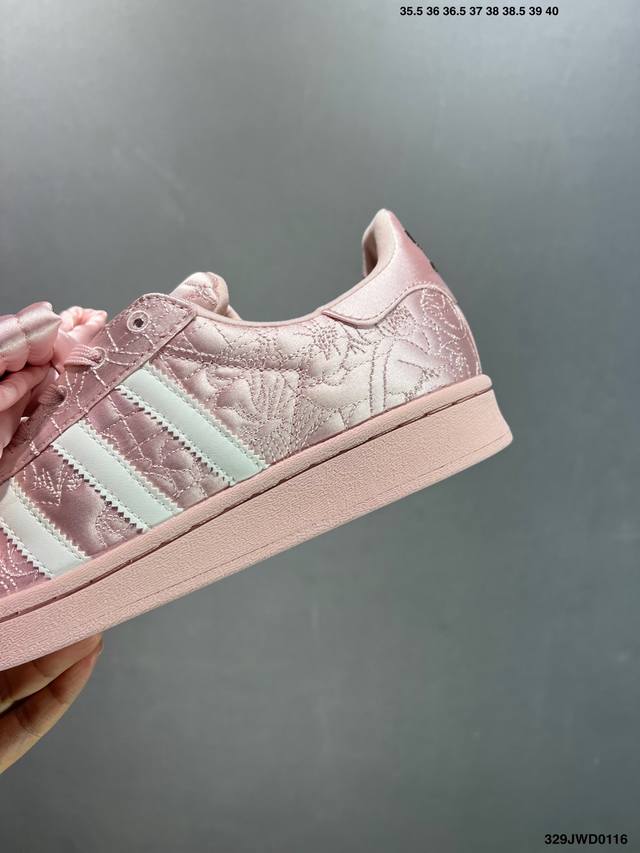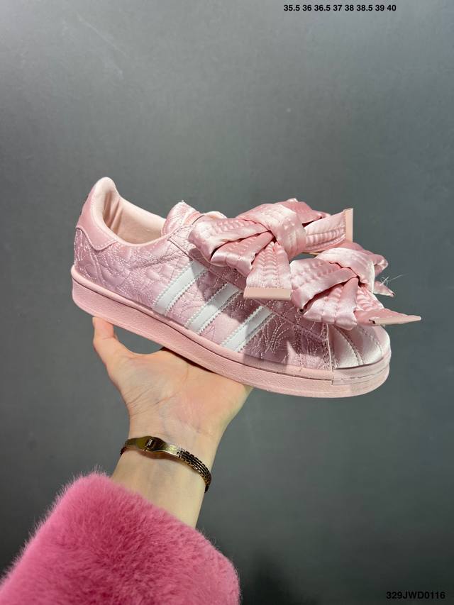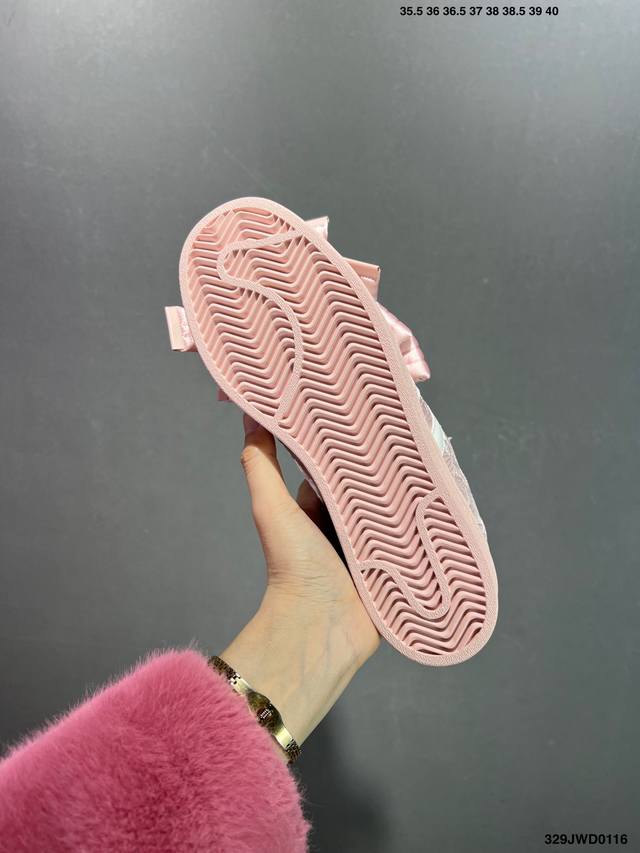 公司级Caroline Hu X Ad Originals Superstar W 贝壳头联名潮流时尚防滑减震低帮板鞋 Jr7978 纯色鞋身 搭配大朵蝴蝶结 呈现风格极为有趣 少女心十足 细节点缀更是非常巧妙 充满趣味性 两副鞋带 可替换使用或花式系带 根据服饰的色彩随意切换造型 Size:36 36.5 37.5 38 38.5 39 40 40.5 41 42 42.5 43 44 44.5 45 46