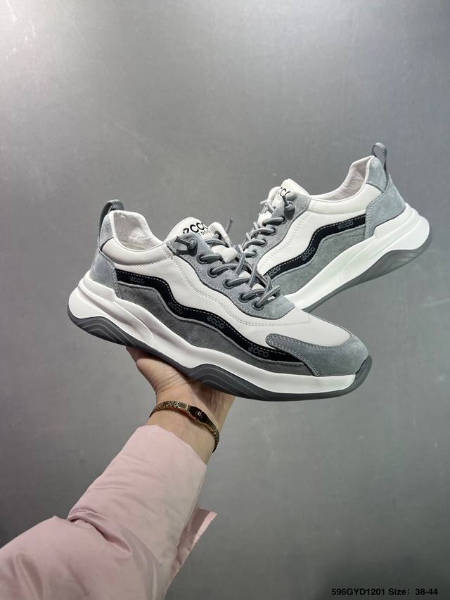 公司级Ecco爱步男鞋 百搭休闲老爹鞋 柔酷8号系列运动鞋 经典和现代工艺品质融合 精选小牛皮面料 舒适柔软细腻 版型楦型上脚非常到位 四季热销款 独有鞋型设计 特有Logo鞋边走字 新颖时尚有型 北欧风格 舒适休闲 超弹性 耐磨减震 pu+Tpu按摩大底 经典潮流 随意搭配!舒适度极高 匠心工艺!尺码:38 39 40 41 42 43 44 皮鞋码 Id:596Gyd1201 DDD