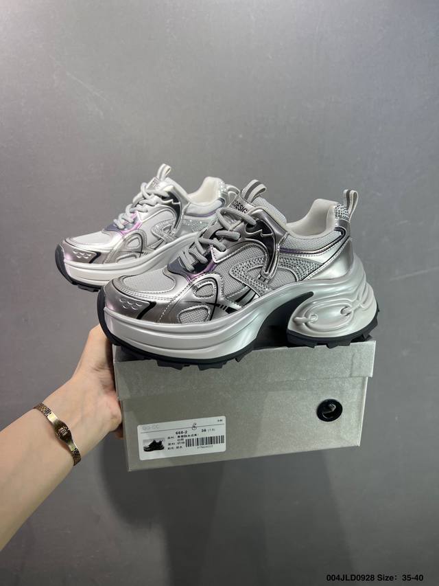 #广东大厂出品 完美细节 25Ss春季新款厚底增高 大长腿 时髦Look轻松定格 不费力展现率性氛围 高档银盒 酷帅机能风不规则设计大底 白银拼色造型设计 轻便舒适百搭 Ggcc厚底增高简直就是小个子的快乐不管怎么搭都好看~