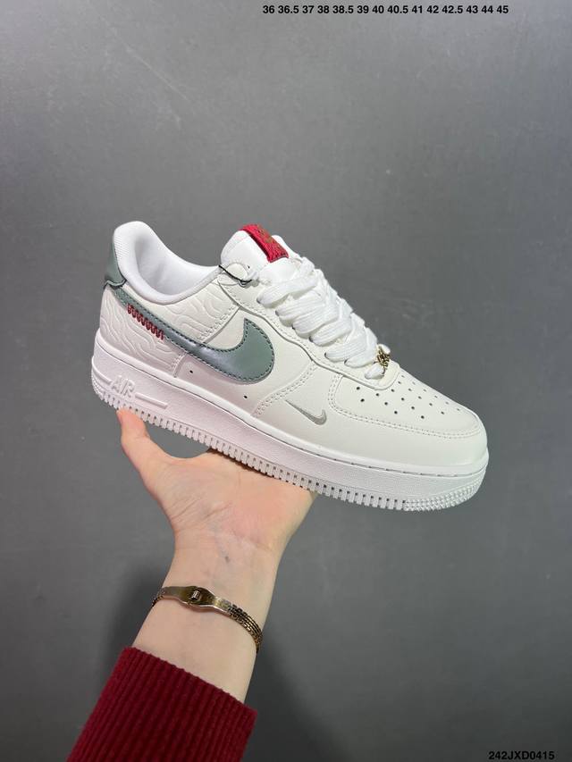 公司级Nk Air Force 1 Low ‘07 空军一号低帮经典板鞋 Cny蛇年限定 Hv5979-130 大厂出品 同步官方全新版本 不规则波浪大底咬花 全鞋电脑针车 工整有序 视觉效果满分 原厂拉帮手法 标准四线 密度针距针孔大小控制到位 原装反口里网布海绵 正确卡色网眼大小 新版鞋撑改用纸团代替 原厂港宝加持完美还原灵魂版型 原盒原配从里到外百分百还原 原厂全头层原厂皮料 原标原盒 内置Sole气垫 中底白色背胶 中底划线 已经无限的接近公司 原厂楦头 原厂刺绣 后跟弧度修正 独家私模 尺码:3