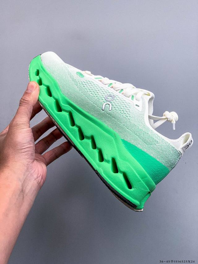 公司级!On昂跑 Cloudsurfer Max 舒适百搭 简约 耐磨 低帮跑步鞋 DDD Cloudsurfer Max鞋身外观的设计灵感源于 On 昂跑的专业竞赛鞋 鞋面采用工程编织材料打造 提供无缝贴合的穿着体验 轻盈透气的鞋面贴合脚部 确保舒适的穿着感与稳定的锁定效果 鞋底经过升级的橡胶垫片在干湿条件下均提供高抓地力和耐用性 DDD 1116525X24 DDD
