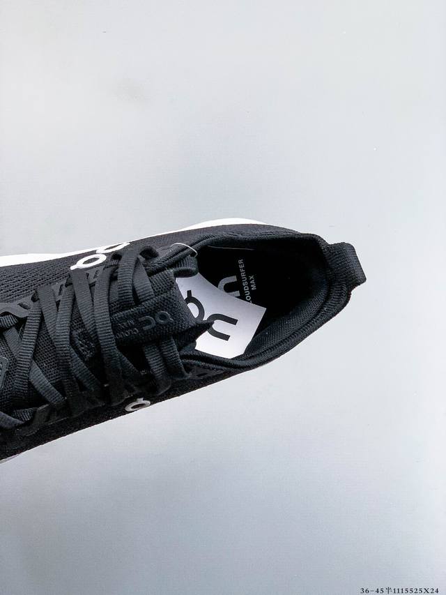 公司级!On昂跑 Cloudsurfer Max 舒适百搭 简约 耐磨 低帮跑步鞋 DDD Cloudsurfer Max鞋身外观的设计灵感源于 On 昂跑的专业竞赛鞋 鞋面采用工程编织材料打造 提供无缝贴合的穿着体验 轻盈透气的鞋面贴合脚部 确保舒适的穿着感与稳定的锁定效果 鞋底经过升级的橡胶垫片在干湿条件下均提供高抓地力和耐用性 DDD 1115525X24 DDD