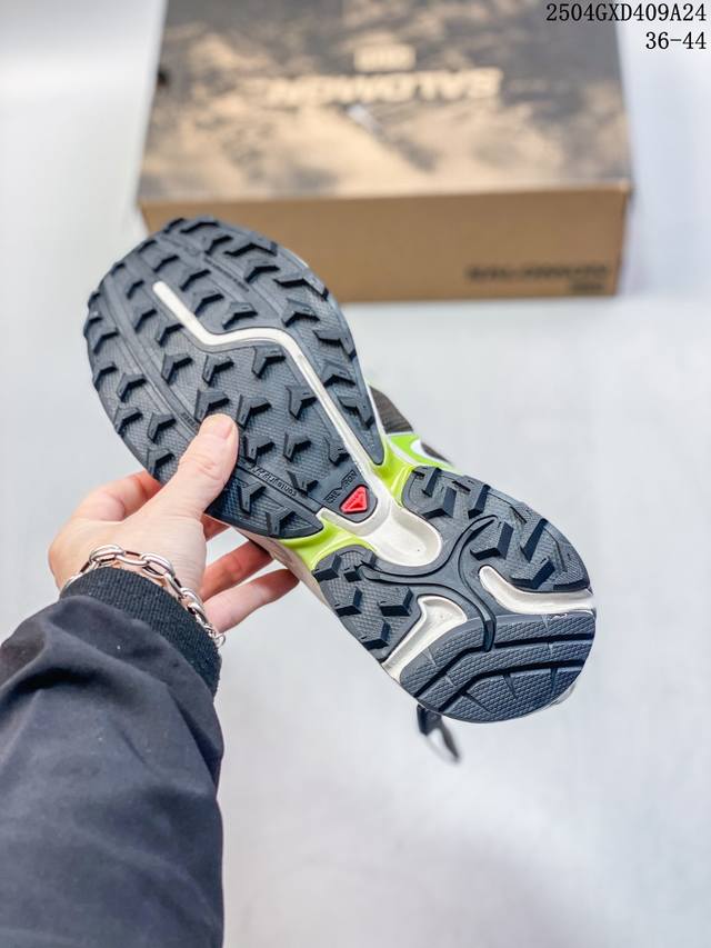 公司级Salomon Xa pro 3D Suede 萨洛蒙户外越野跑鞋 鞋面采用Sensifit贴合技术 全方位贴合包裹脚型 鞋跟部鞋底牵引设计 提供强大的抓地性能 更适应野外崎岖不平的道路 其3D Advanced Chassis底盘 材料轻量大化 钉齿设计更具稳定性、防护性 鞋底易磨损区运用Contagrip高耐磨材料 应对城市硬质路面长距离跑考验