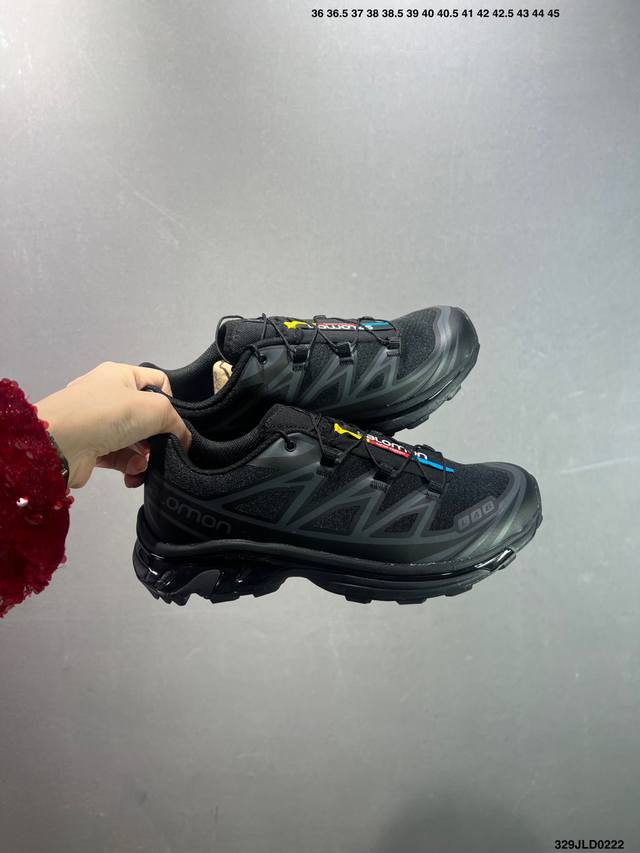 公司级Salomon Xa Pro Xt-6 Ft萨洛蒙户外越野跑鞋 鞋面采用Sensifit贴合技术 全方位贴合包裹脚型 鞋跟部鞋底牵引设计 提供强大的抓地性能 更适应野外崎岖不平的道路 其3D Advanced Chassis底盘 材料轻量大化 钉齿设计更具稳定性、防护性 鞋底易磨损区运用Contagrip高耐磨材料 应对城市硬质路面长距离跑考验