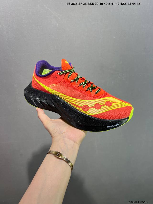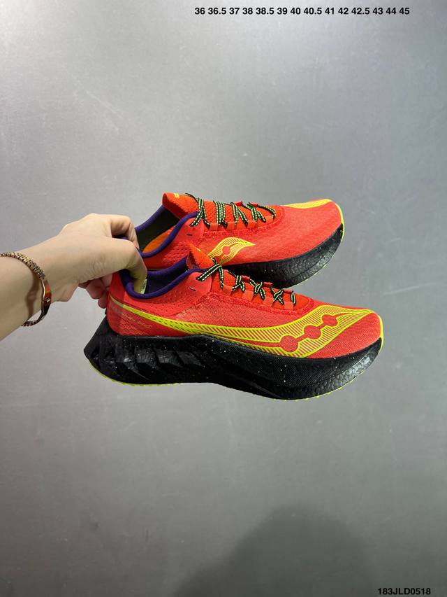 公司级Saucony 索康尼Endorphin pro 啡速4 男女马拉松运动跑鞋 性能相比前几代再升级 鞋面采用全新升级的工学网设计 贴合脚部更透气 中底部分使用最新的pwrrun+材质 搭配pwrrun+鞋垫使中底的大幅加厚 10Mm坡差进一步提供缓震 回弹性能 内底则采用了Formfit动态适应系统 动态契合脚型 提升包裹性和舒适性 提供更卓越的动态回馈体验 Xt-900橡胶大底 可提供良好的抓地力和较强抗磨性能 Size 36 36.5 37.5 38 38.5 39 40 40.5 41 42
